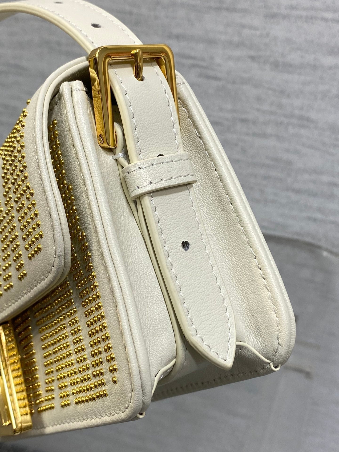 MINI 18 FLAP BAG IN WHITE LAMBSKIN WITH GOLD RHINSTONES