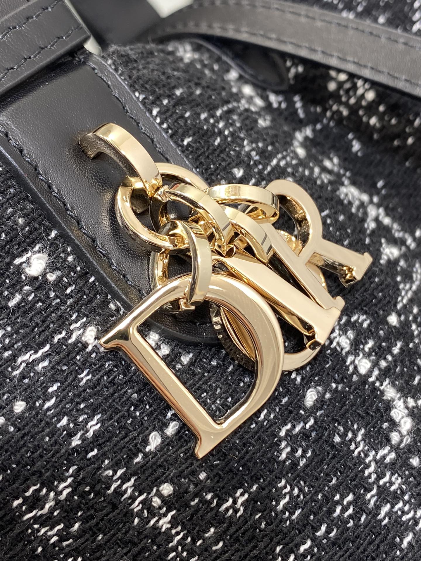 • MINI 23 TOUJOURS BAG IN BLACK MIX WHITE CANNAGE TWEED WITH GOLD HARDWARE