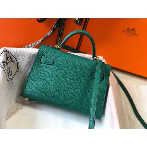 HERM Kelly Mini II Bag In Vert Vertigo Epsom Leather GHW