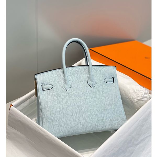 HERM Birkin 25cm Bag In Blue Brume Clemence Leather PHW