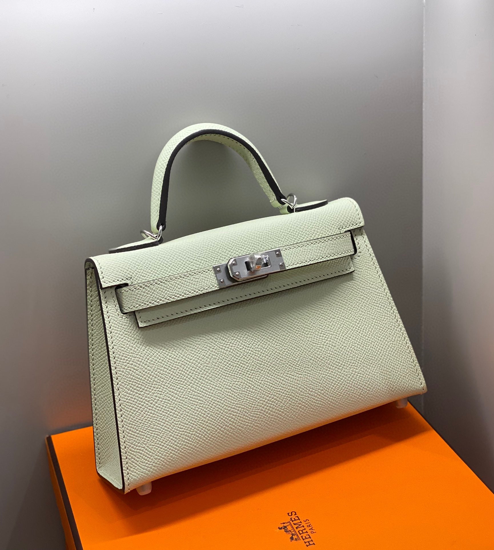 HM KELLY MINI 20 SEAFOAM EPSOM SILVER HARDWARE