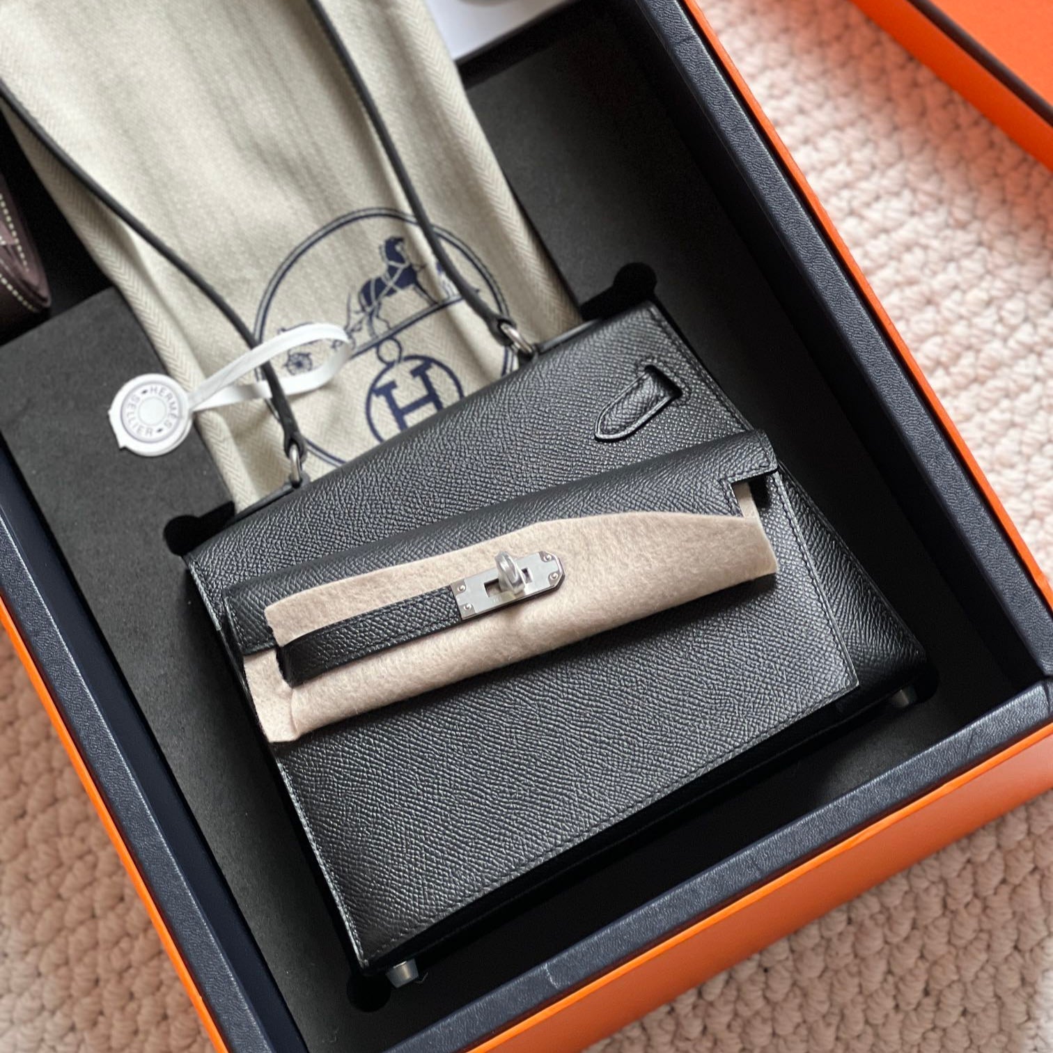 MINI 24/24 29CM IN TOGO ETOUPE EVERCOLOR CALFSKIN GOLD KELLY BUCKLE