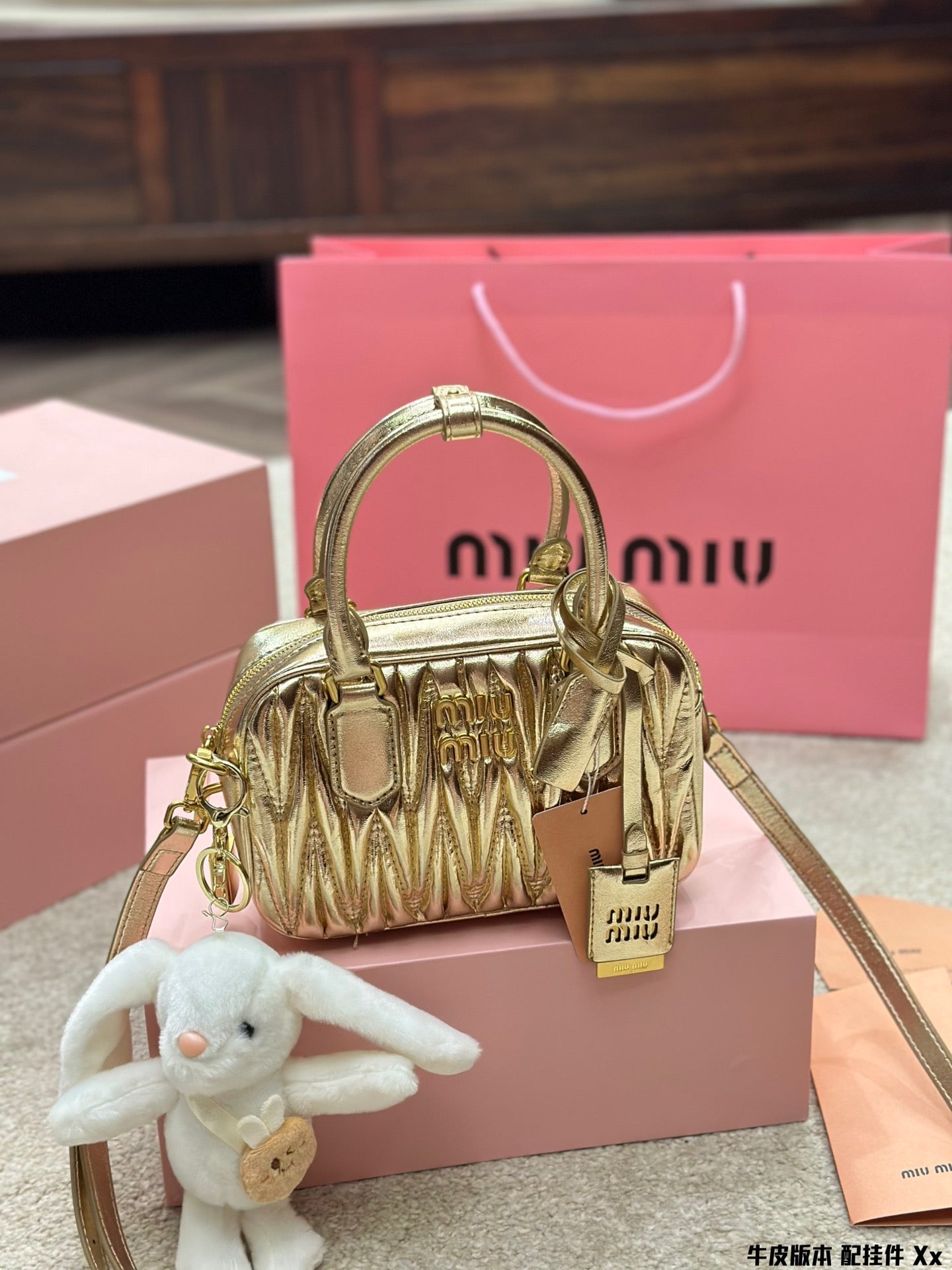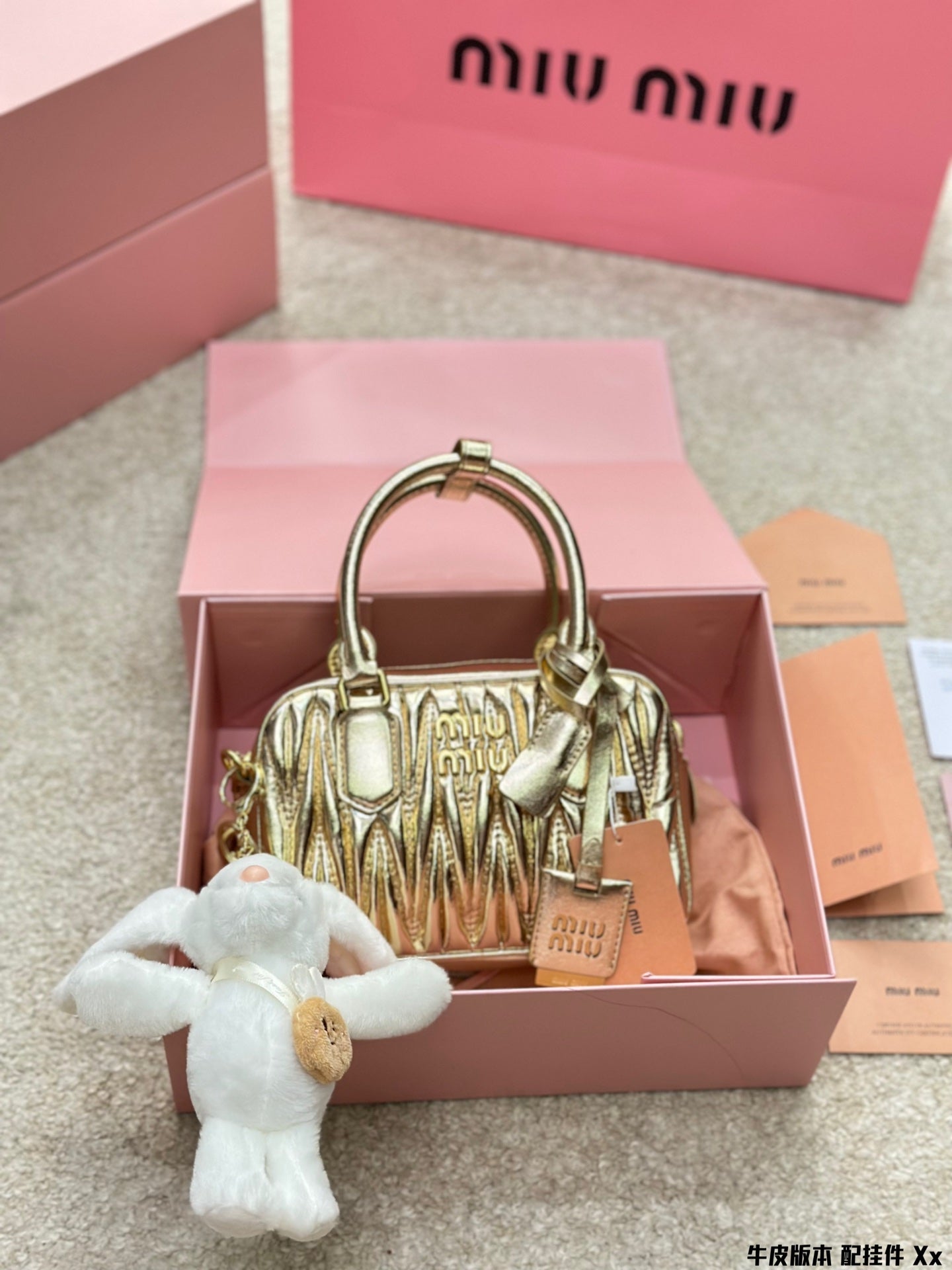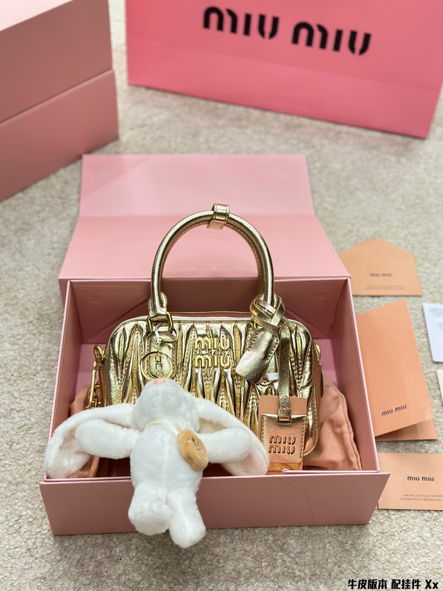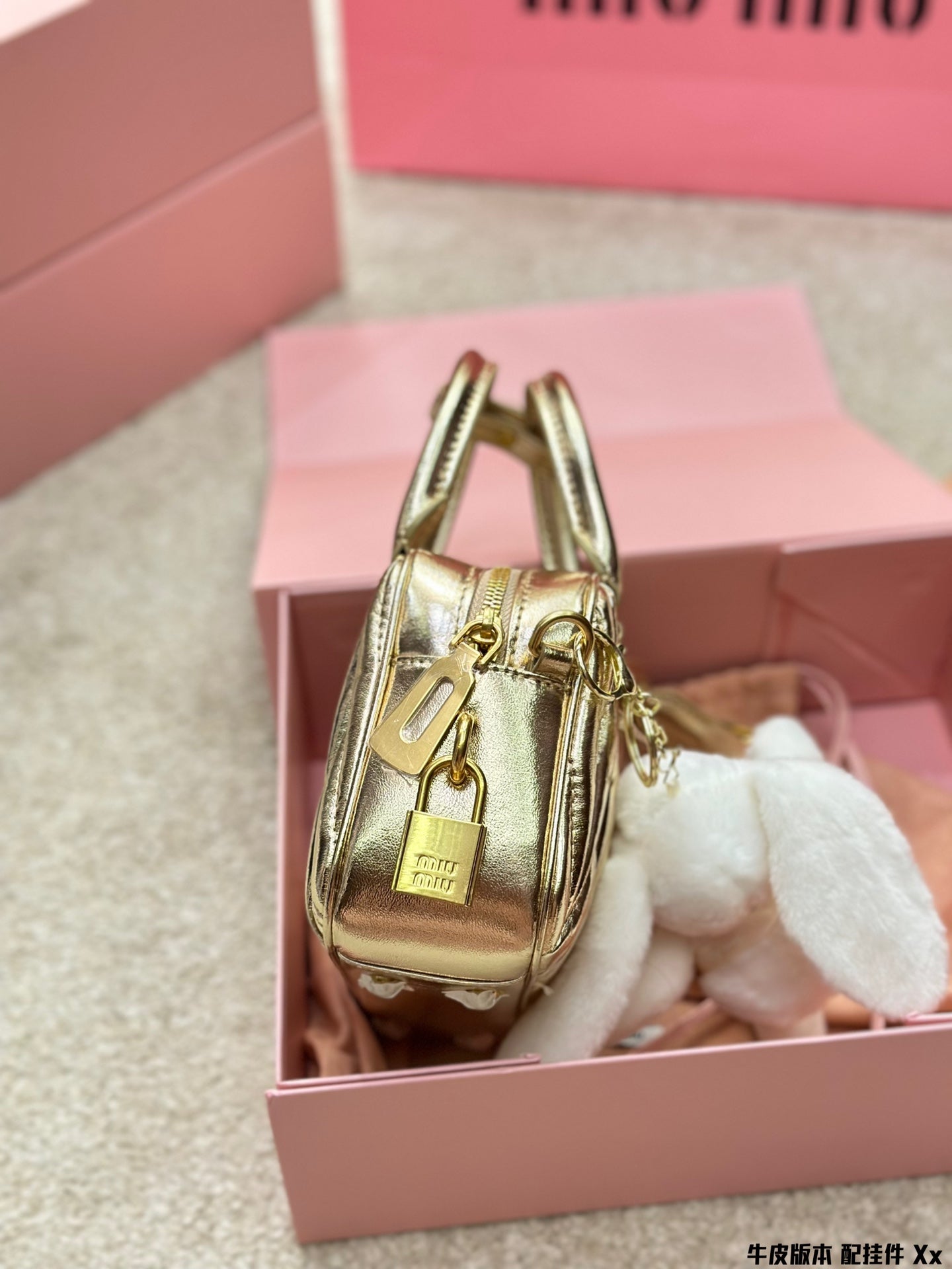 BOWLING BAG 21 IN GOLD LAMBSKIN