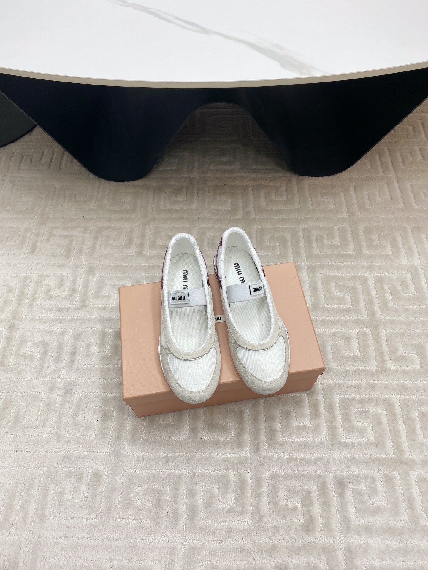 BALLET FLAT SHOES IN WHITE MESH AND BEIGE SUEDE