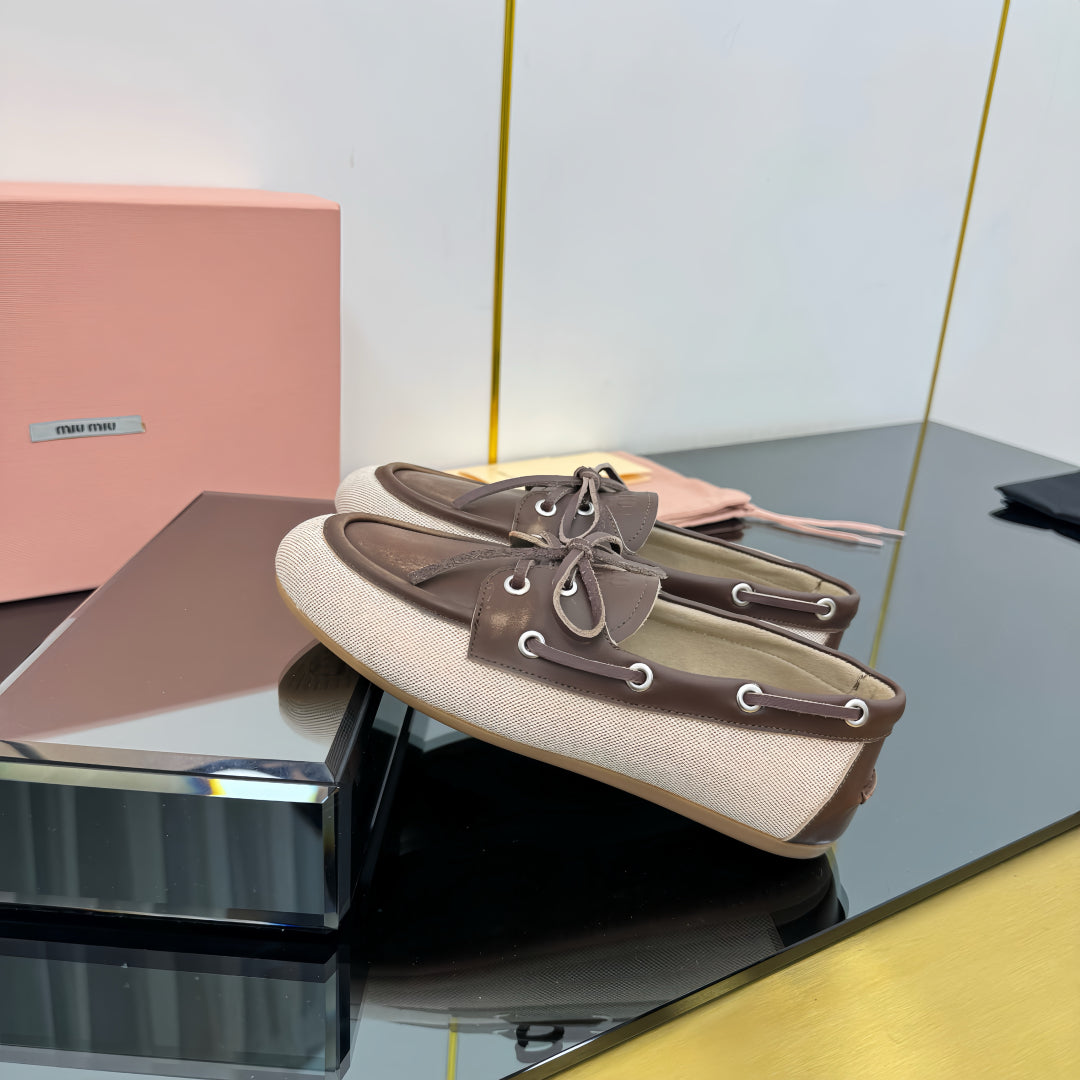 BOAT SHOES IN BROWN CALFSKIN AND BEIGE CANVAS