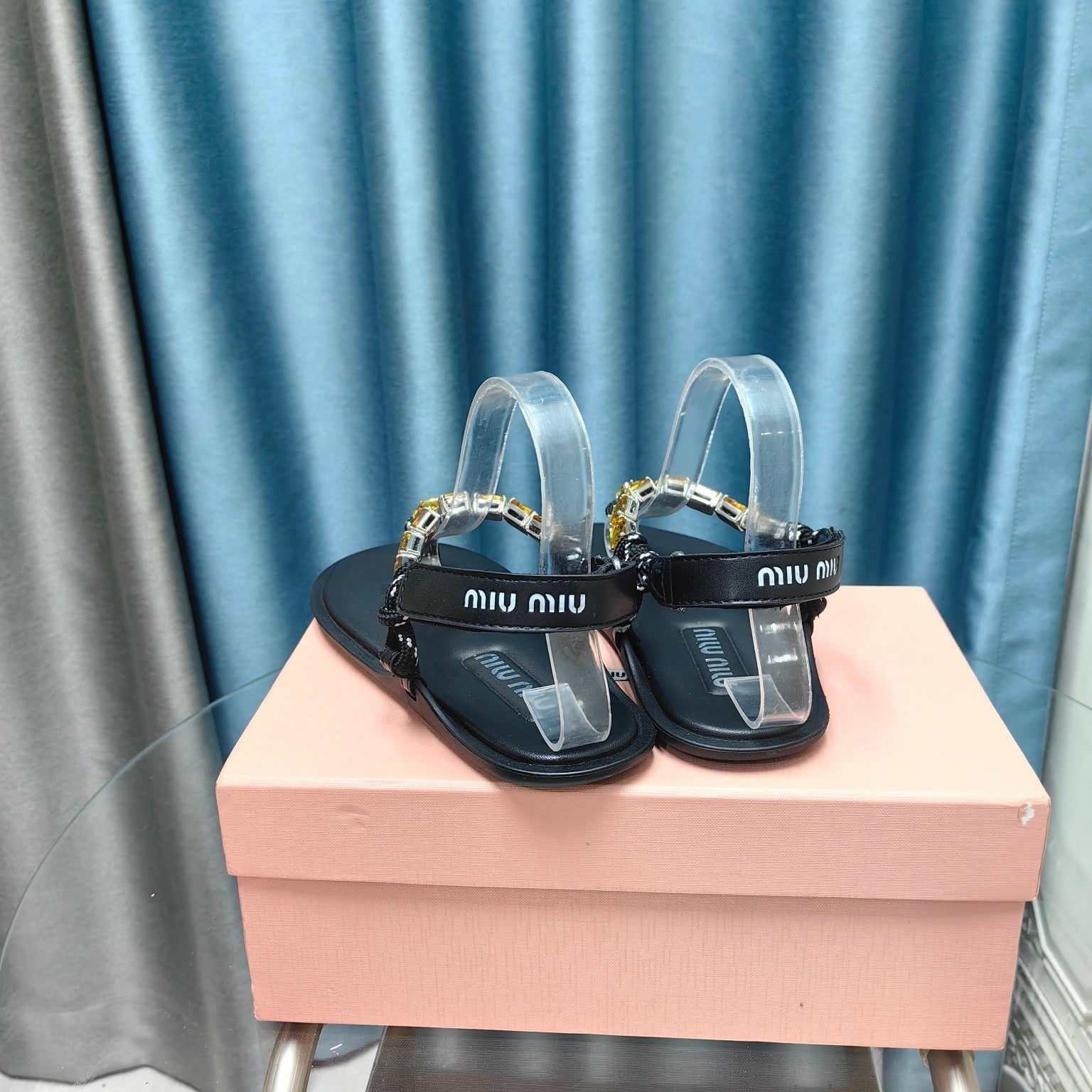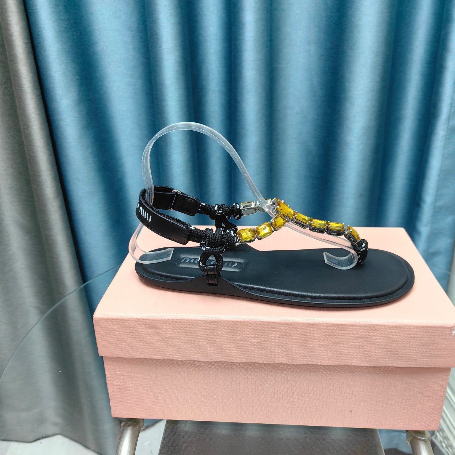 FLIP-FLOPS BLACK COWHIDE WITH CRYSTALS-YELLOW