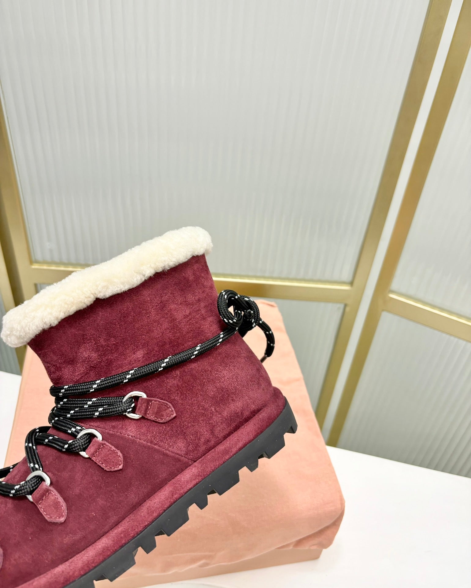 LACE-UP ANKLE BOOTS IN BERRY RED SUEDE AND FLEECE LINING