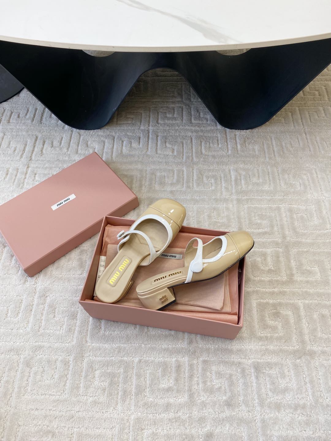 MARY JANE MULE PUMPS IN BEIGE GLOSSY SHEEPSKIN
