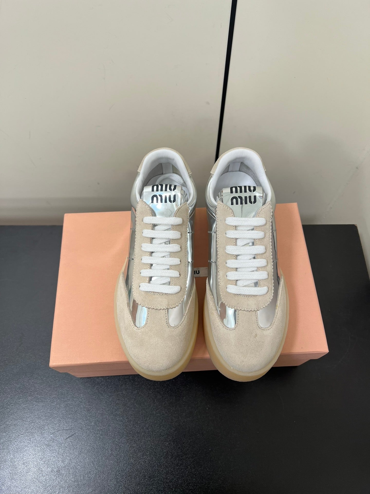 • Color: Silver metallic and beige