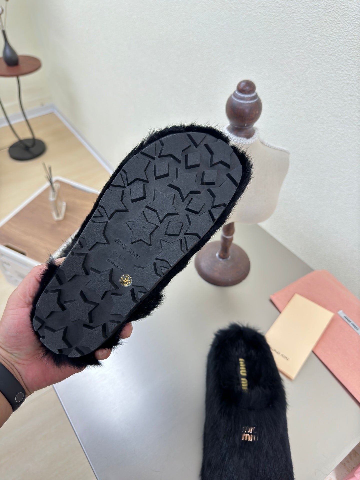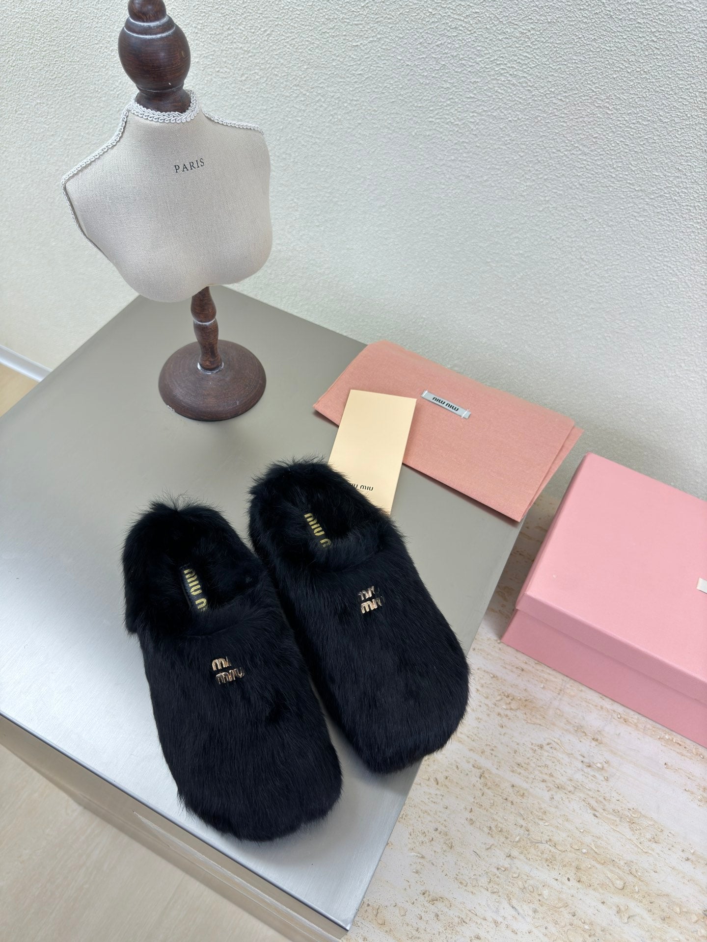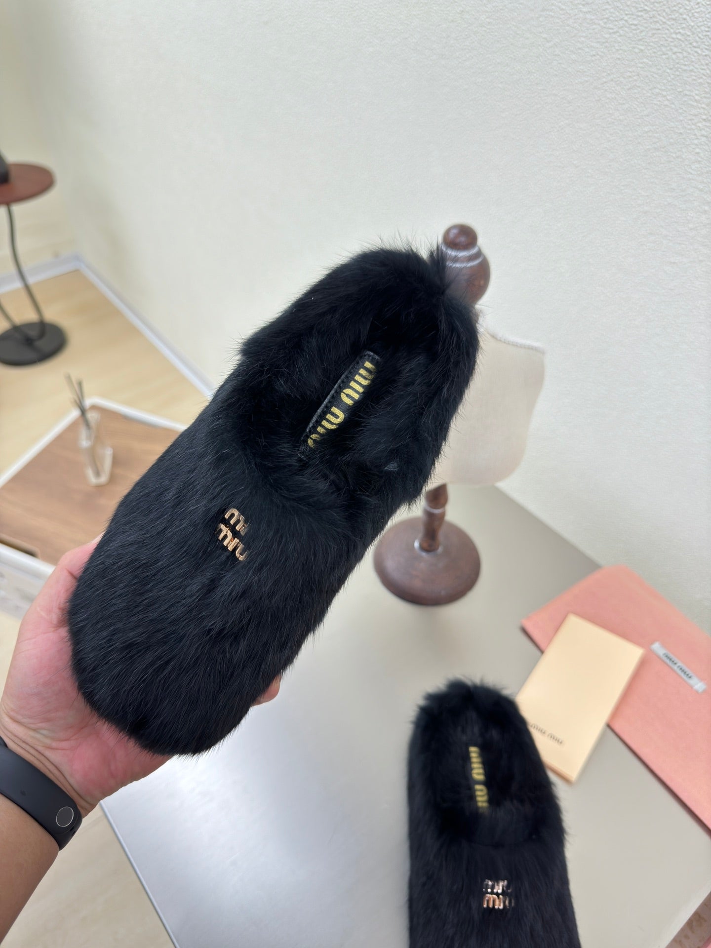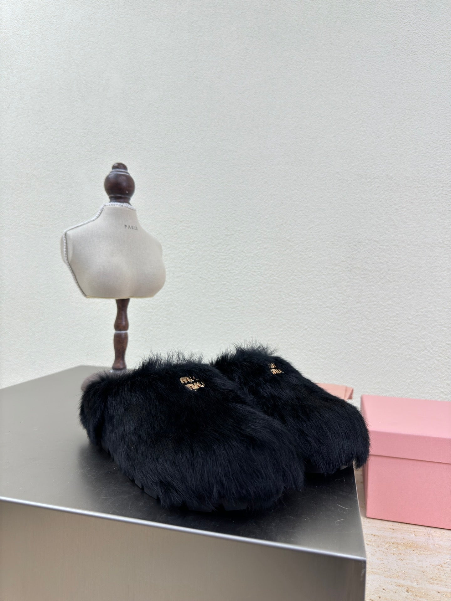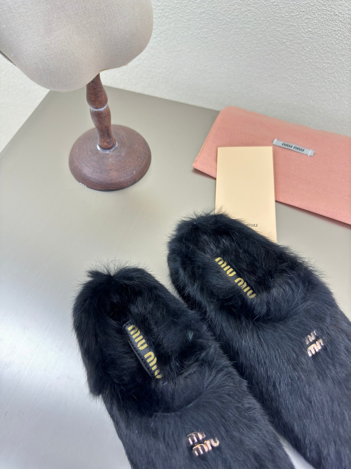 BLACK RABBIT FUR MULES