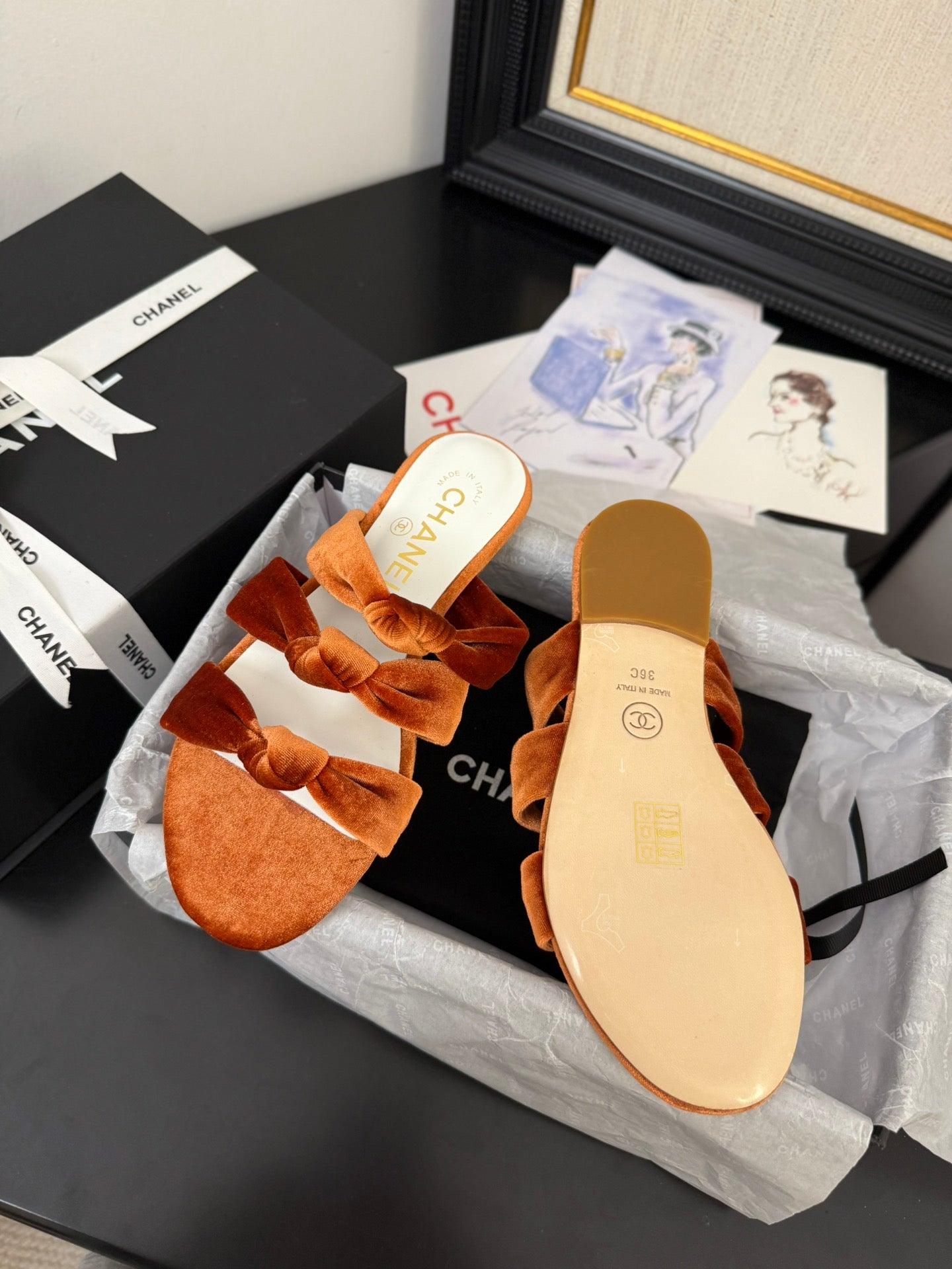 CC 25C Three Strap Mule Pumpkin Velvet fabric 233560