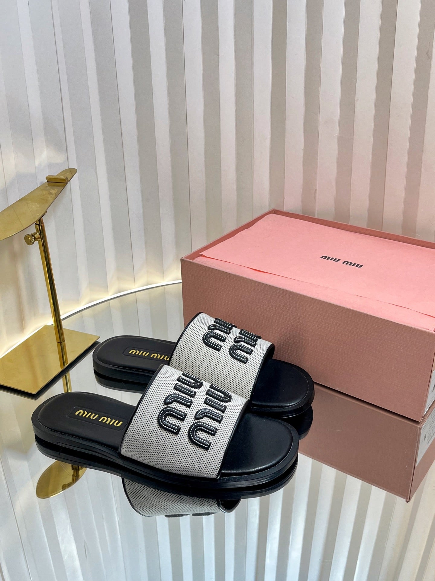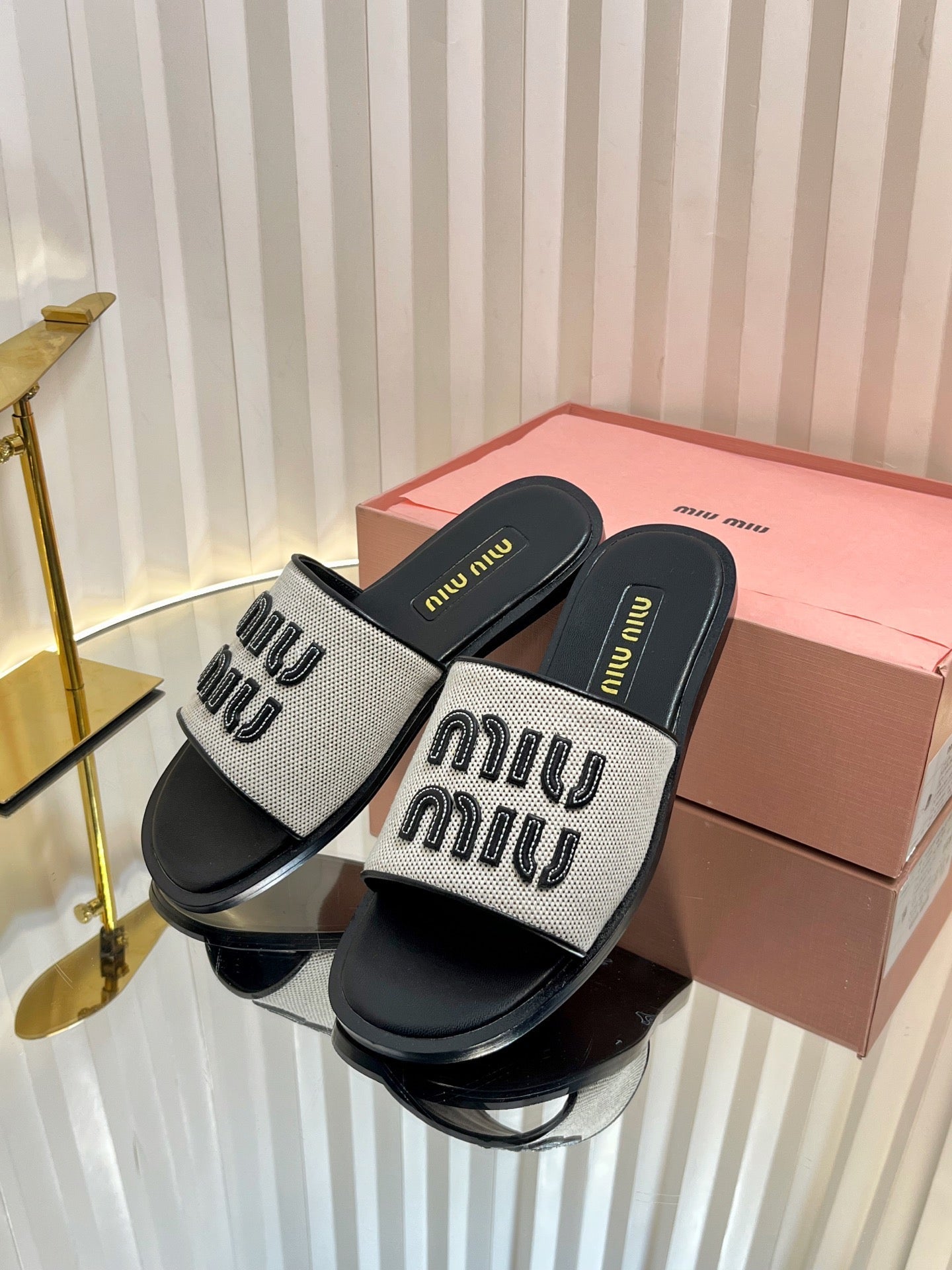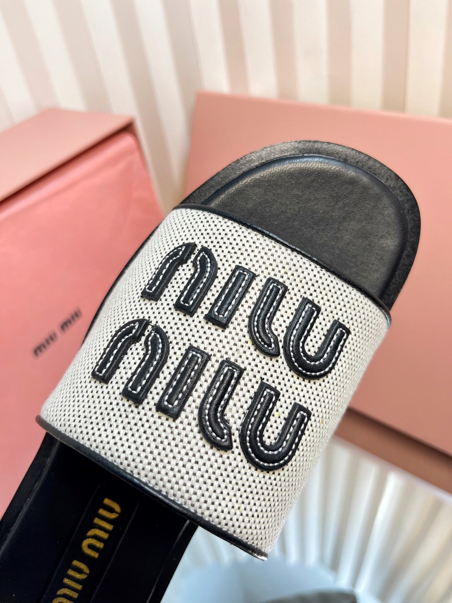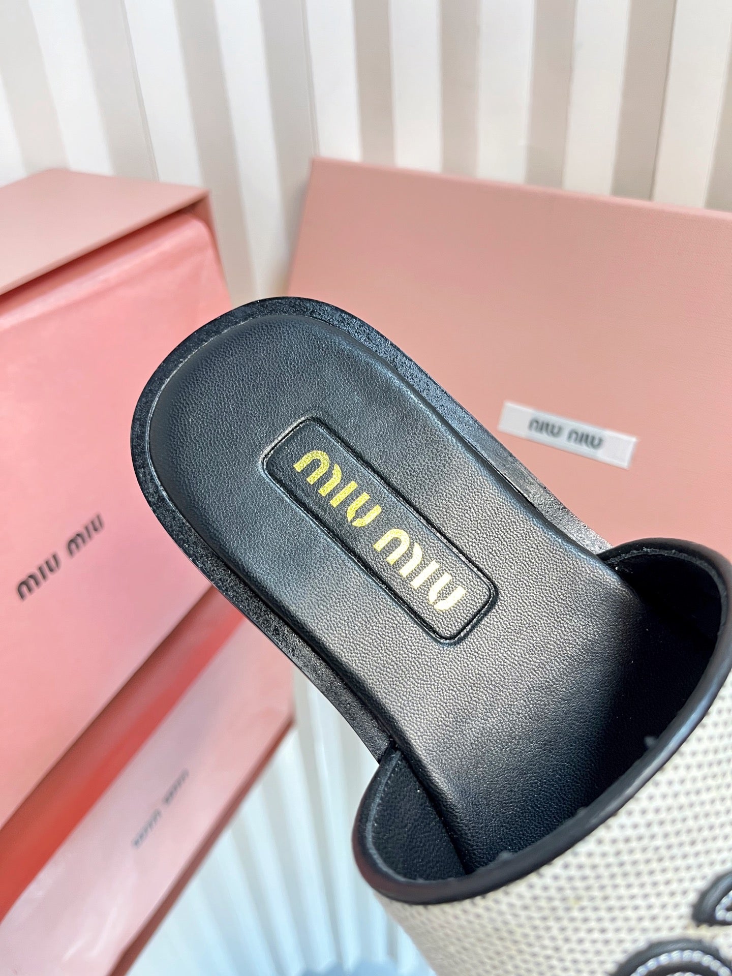 SLIDES SANDALS IN BLACK CALFSKIN AND WHITE STRAW WOVEN