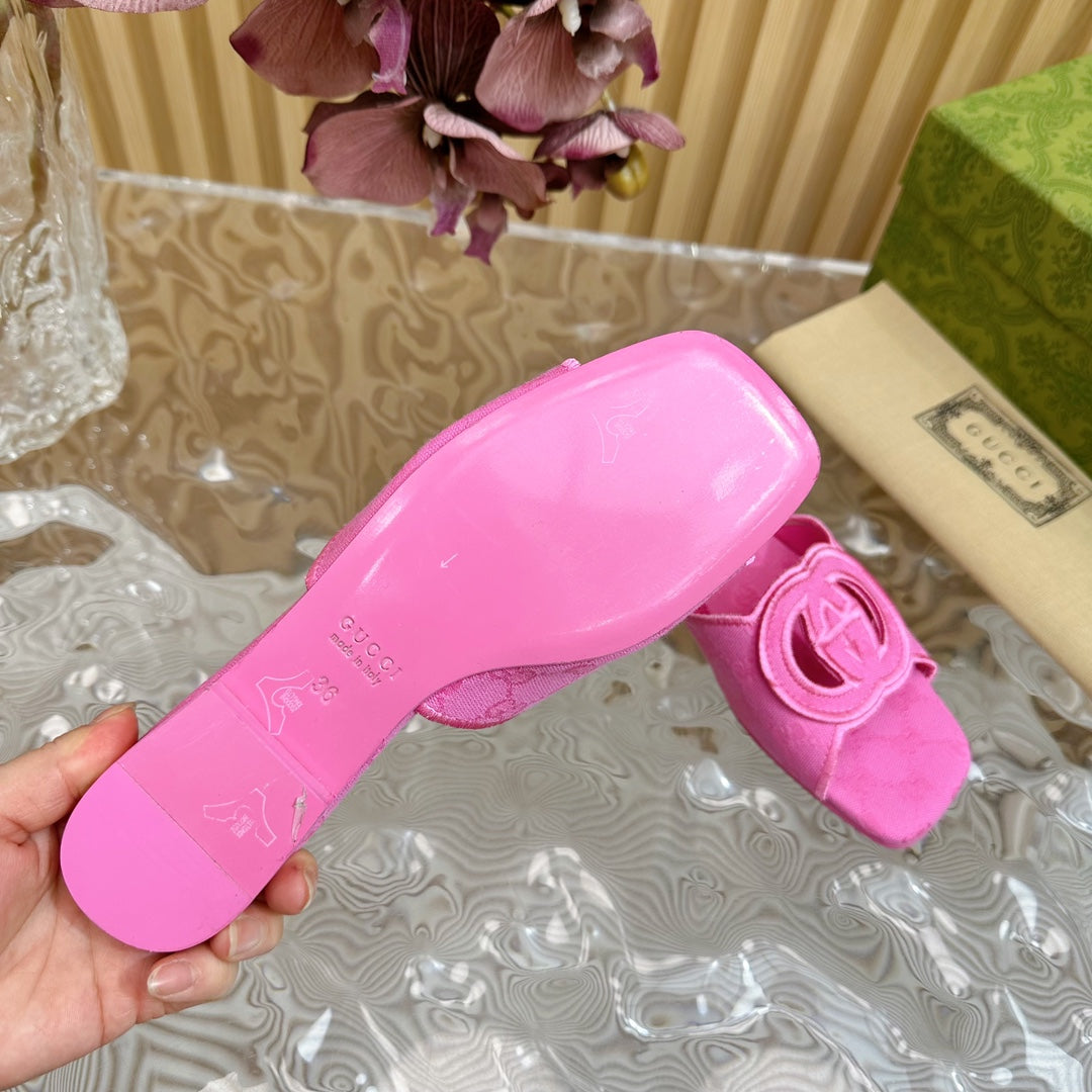 WOMEN'S INTERLOCKING G SLIDE SANDAL BRIGHT PINK CANVAS