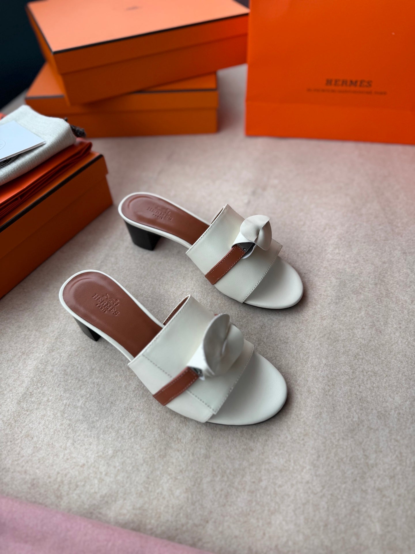 HERM Camilla Mules 60MM In Brown Calfskin