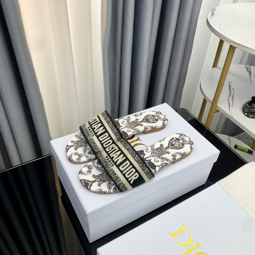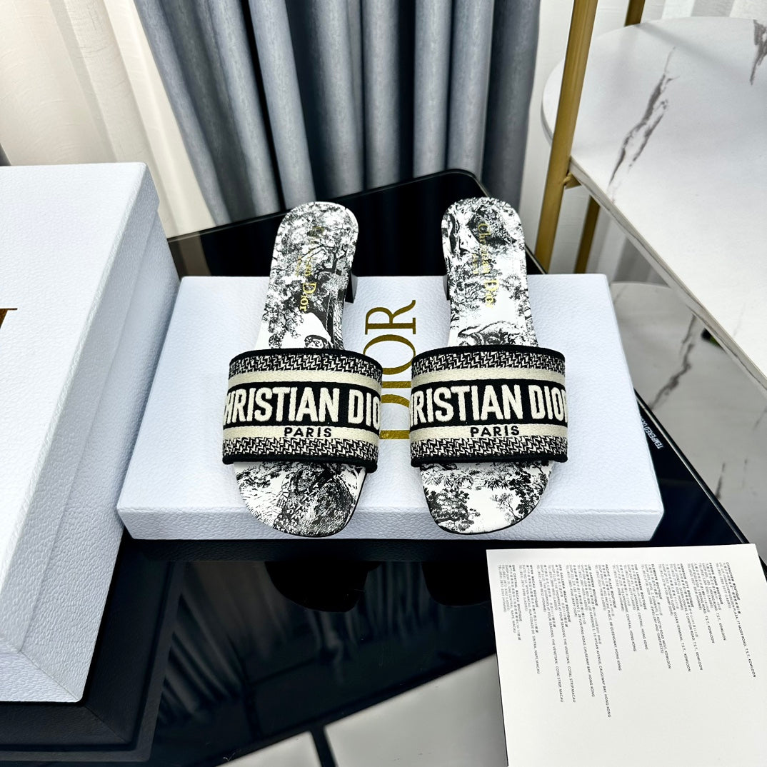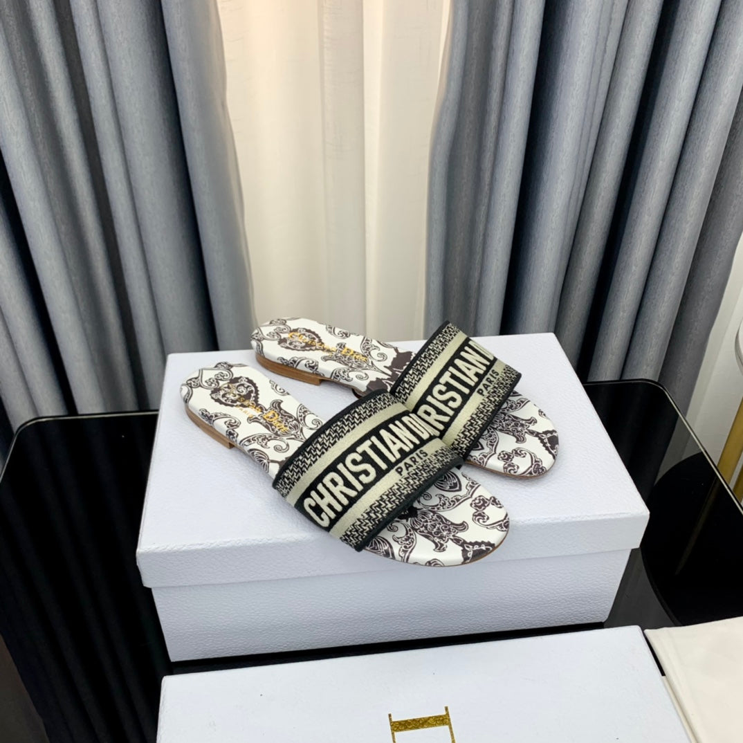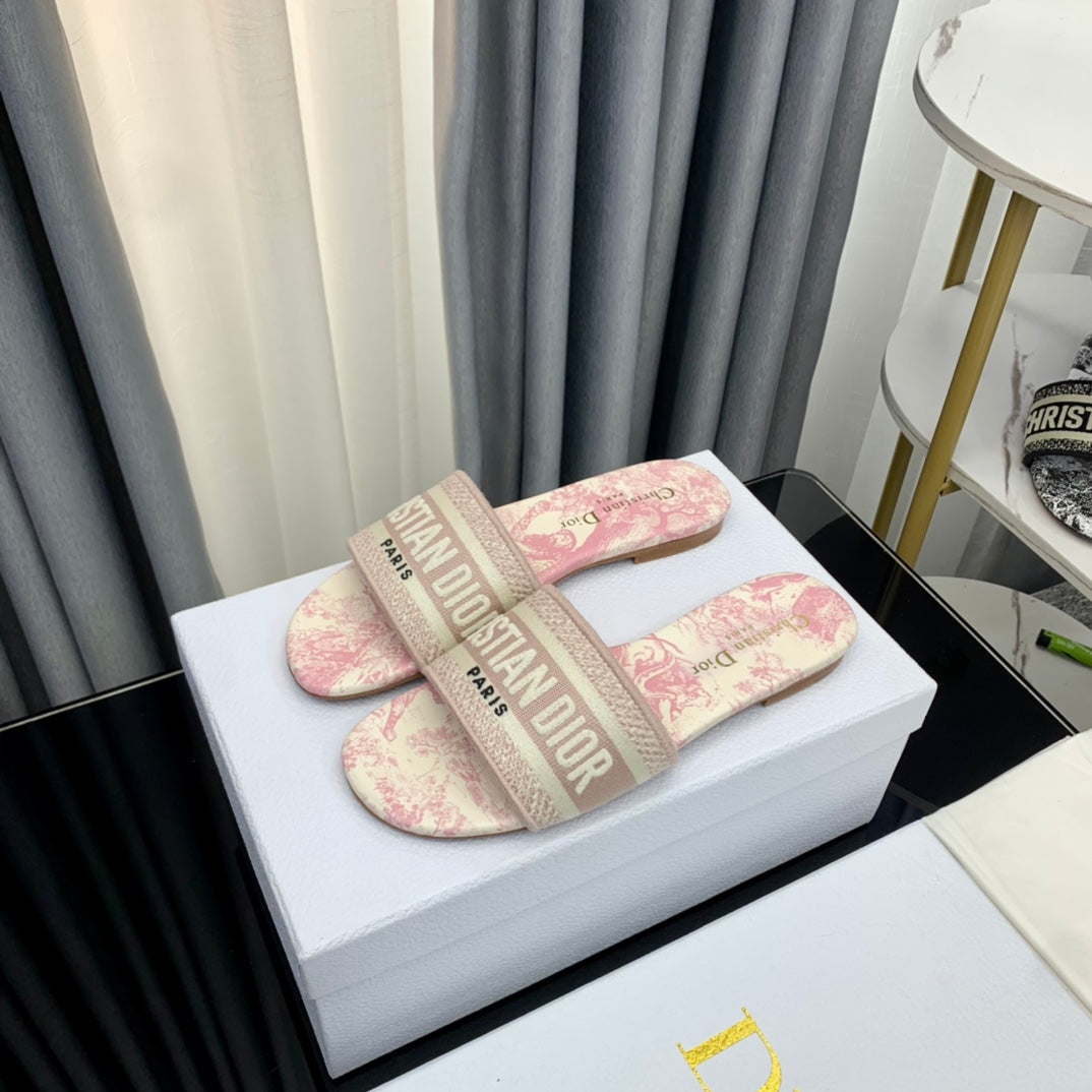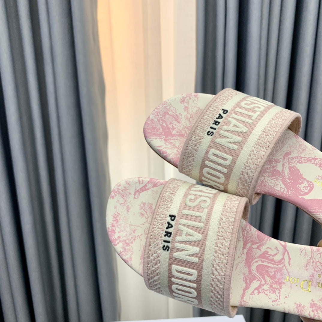 DWAY SLIDE EMBROIDERED COTTON AND LIGHT PINK MISS DIOR ALLOVER MOTIF