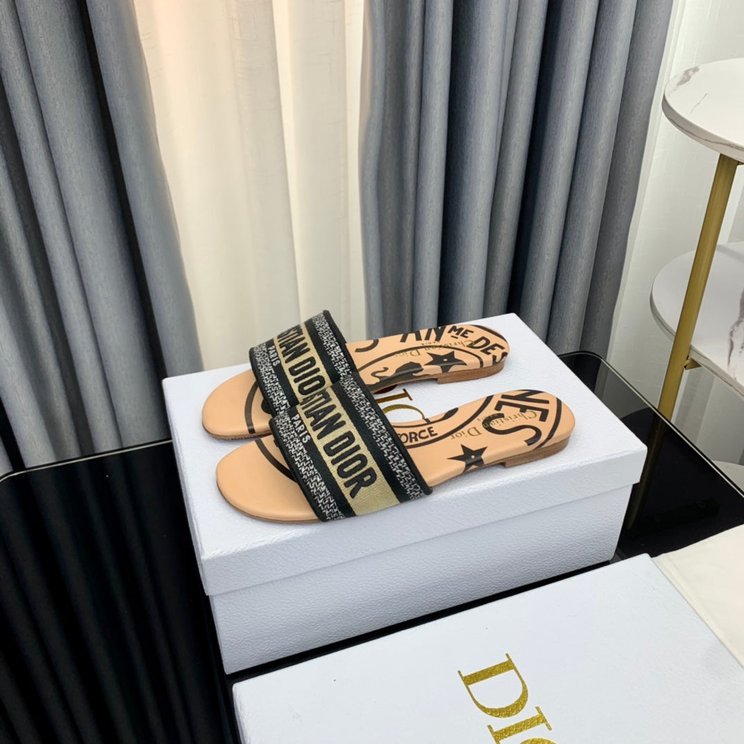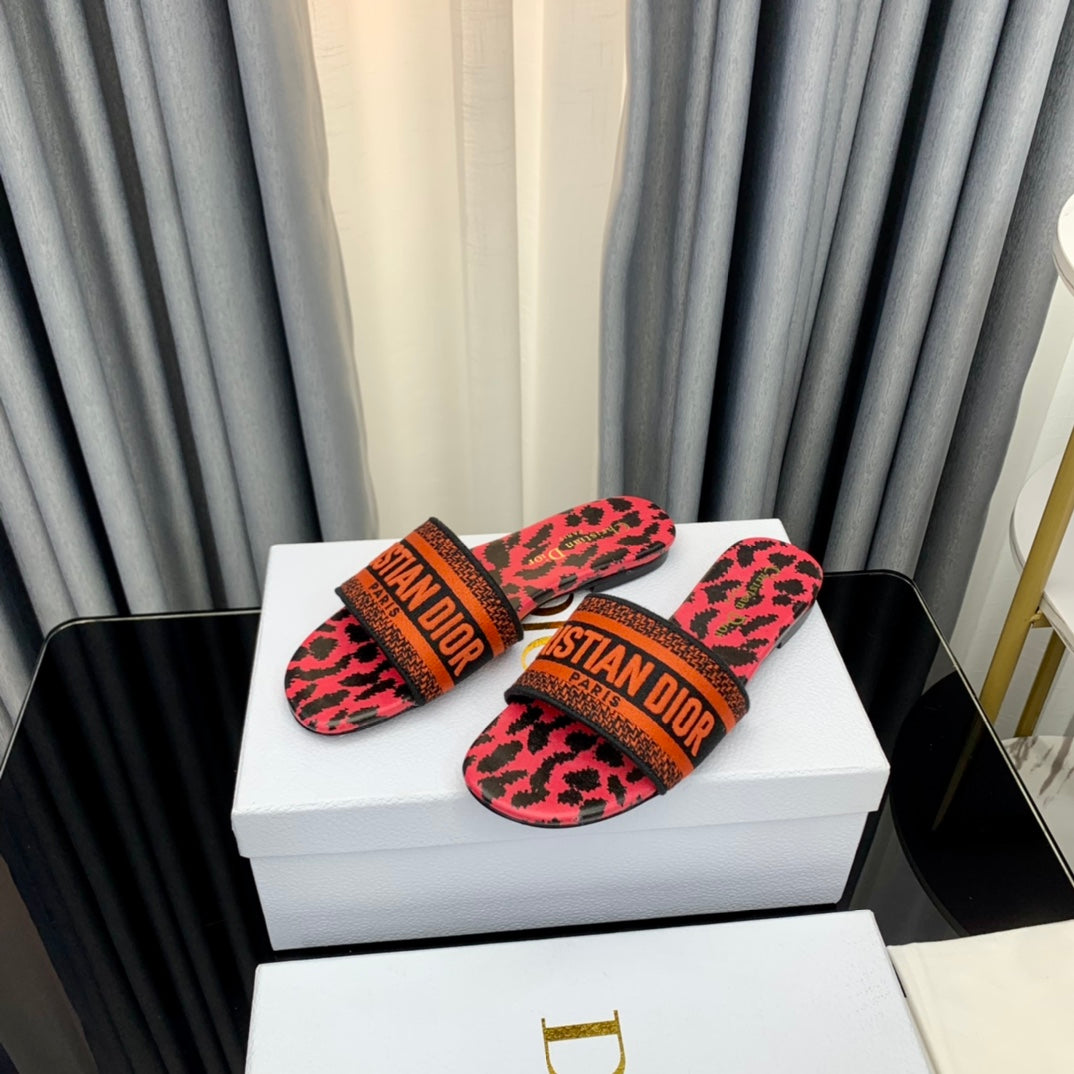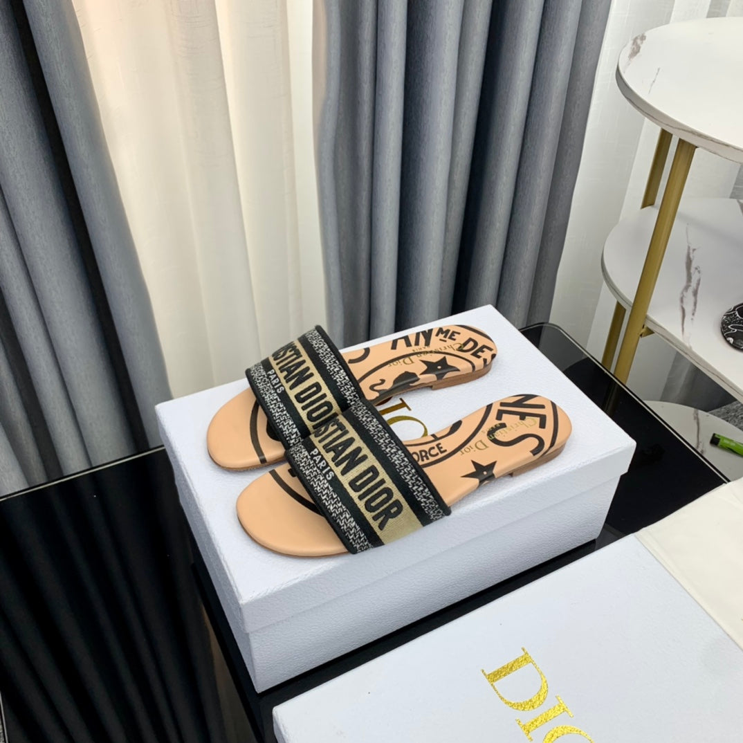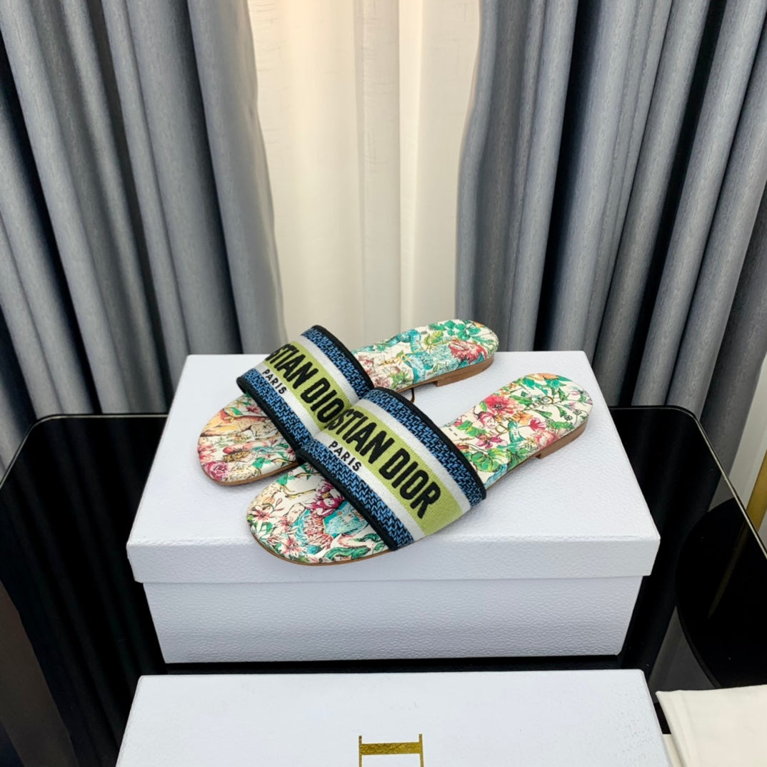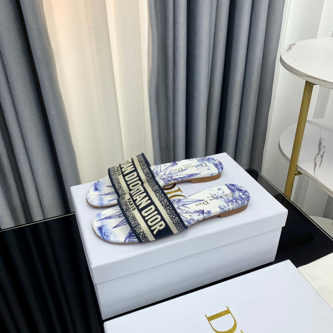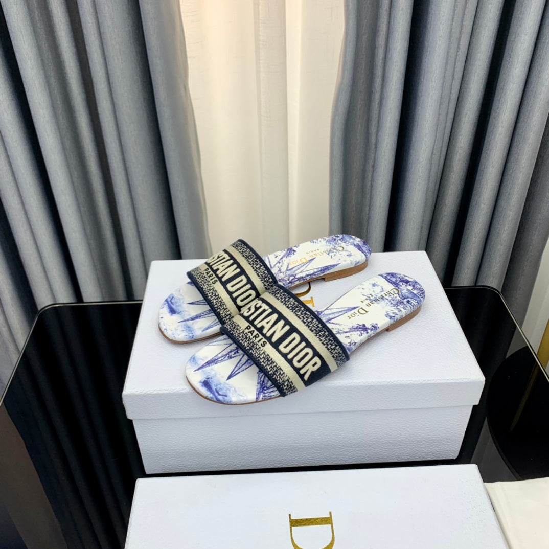 DWAY SLIDE EMBROIDERED COTTON AND LIGHT PINK MISS DIOR ALLOVER MOTIF