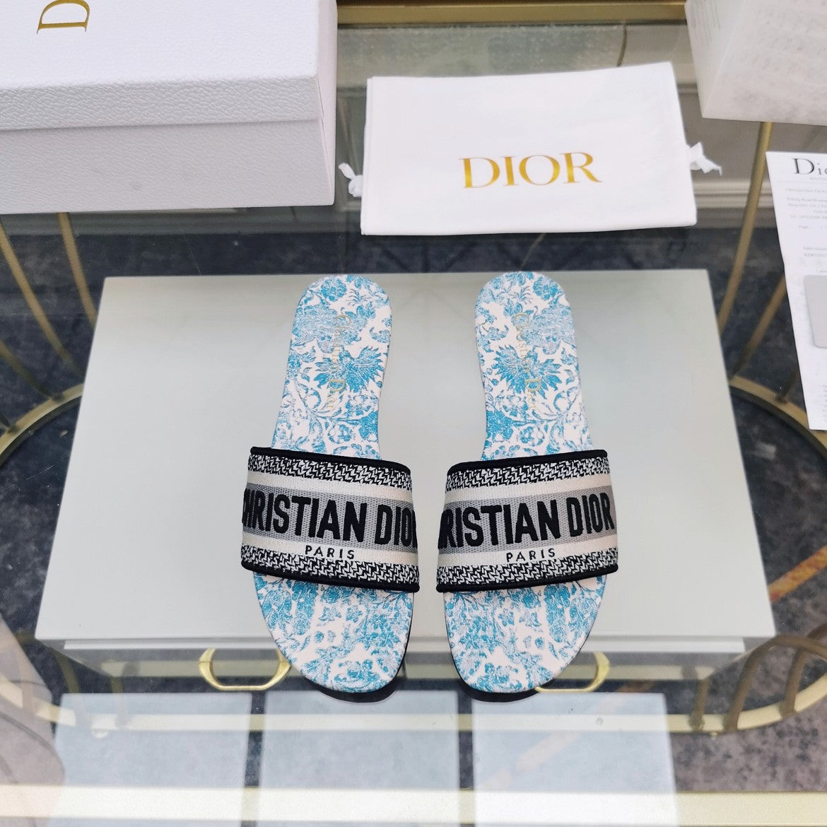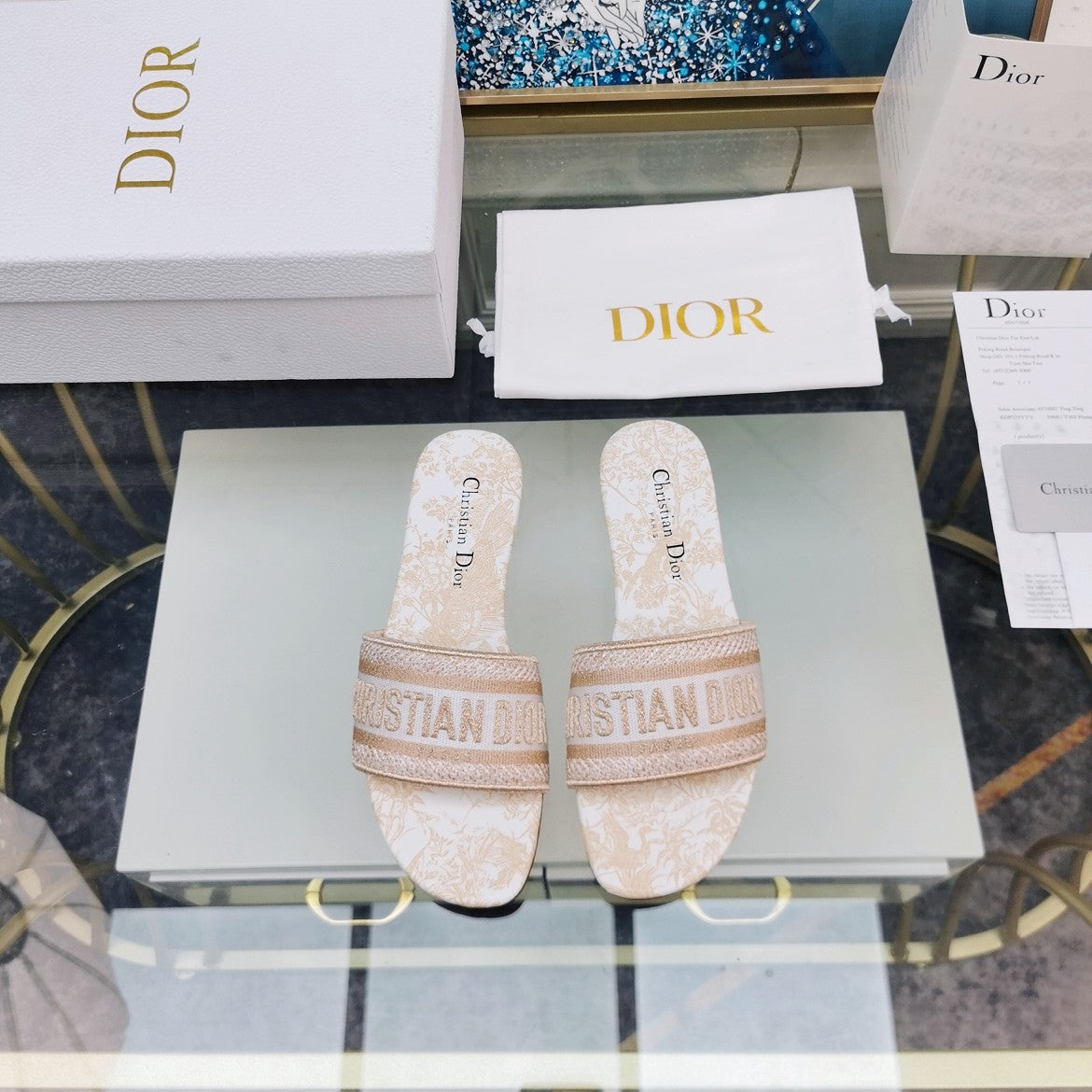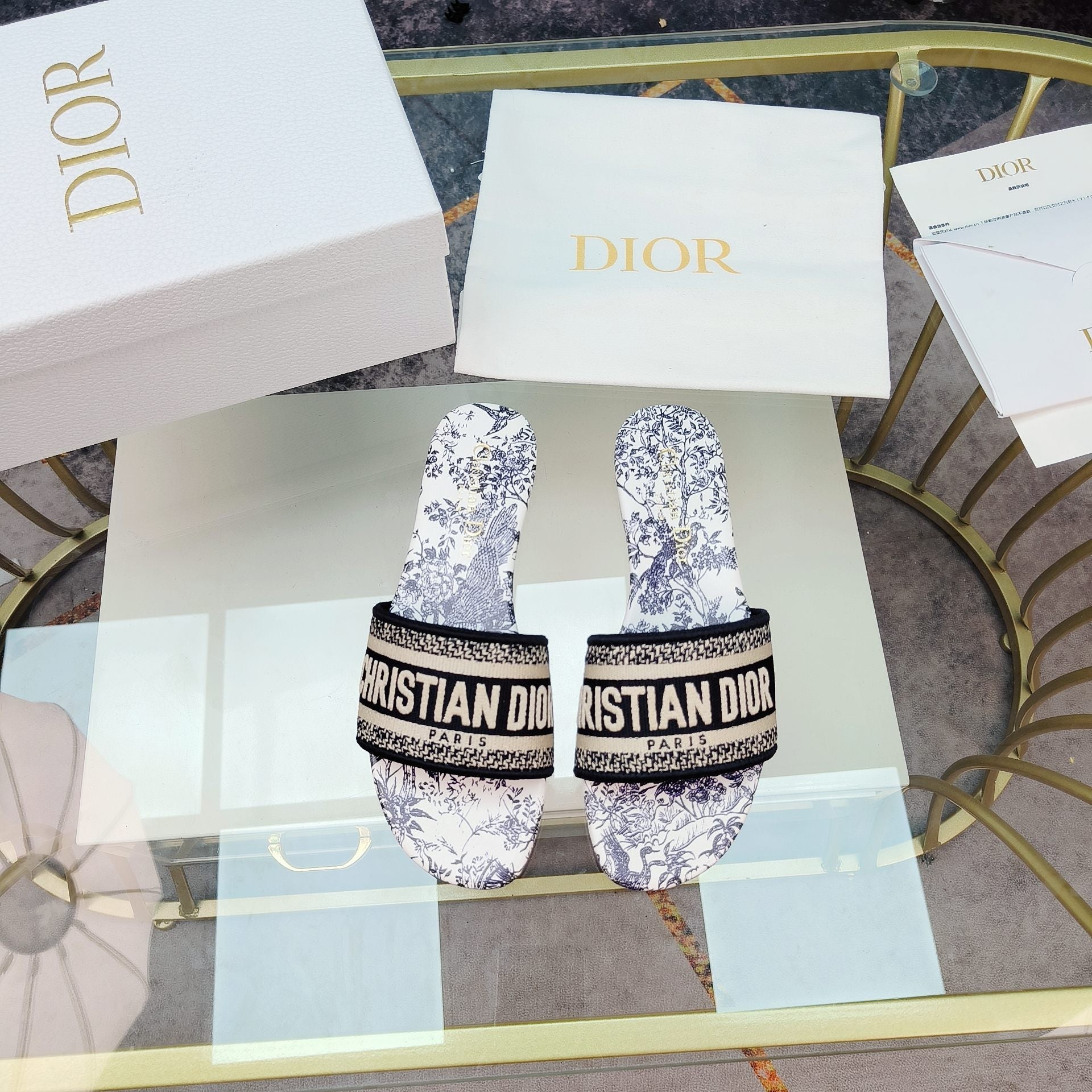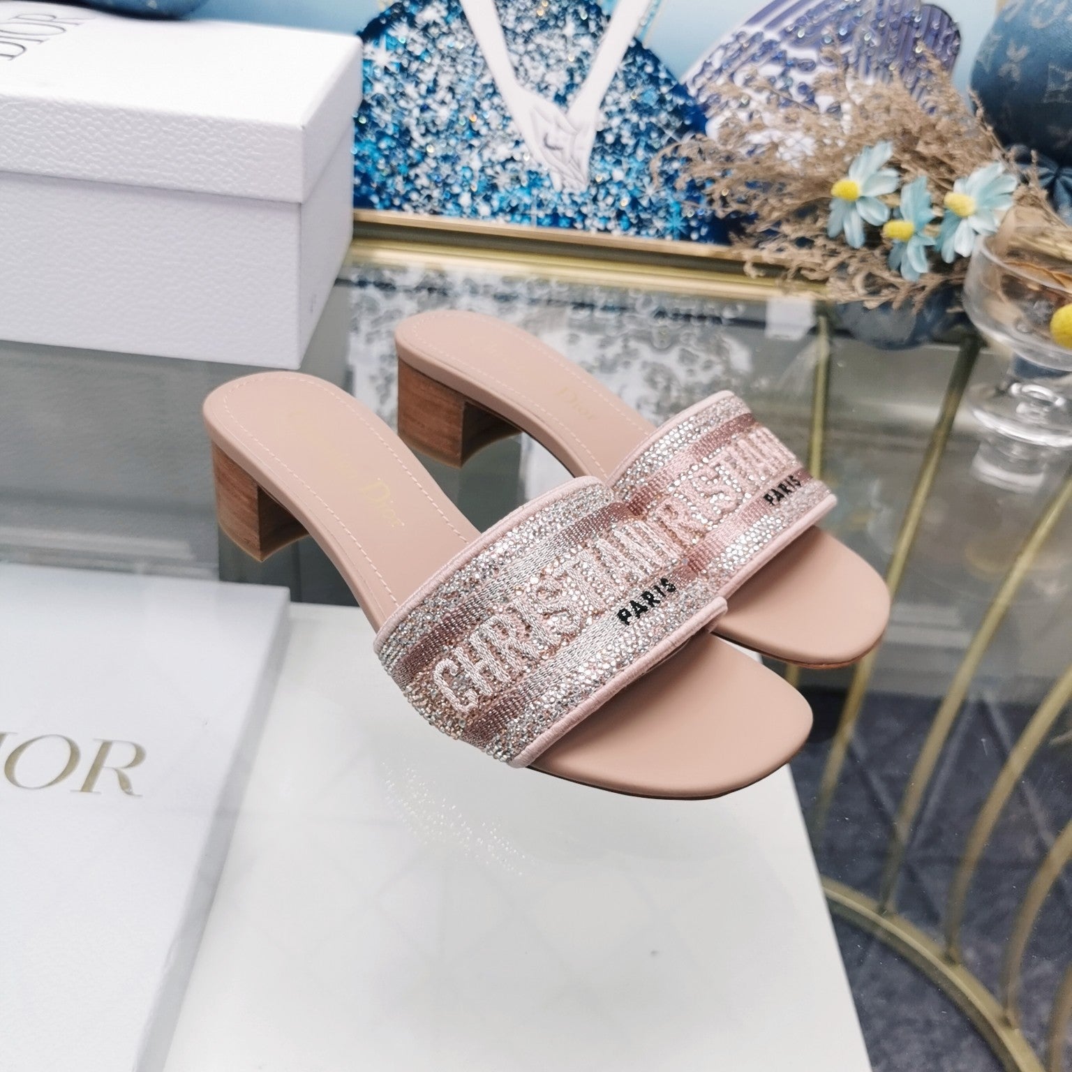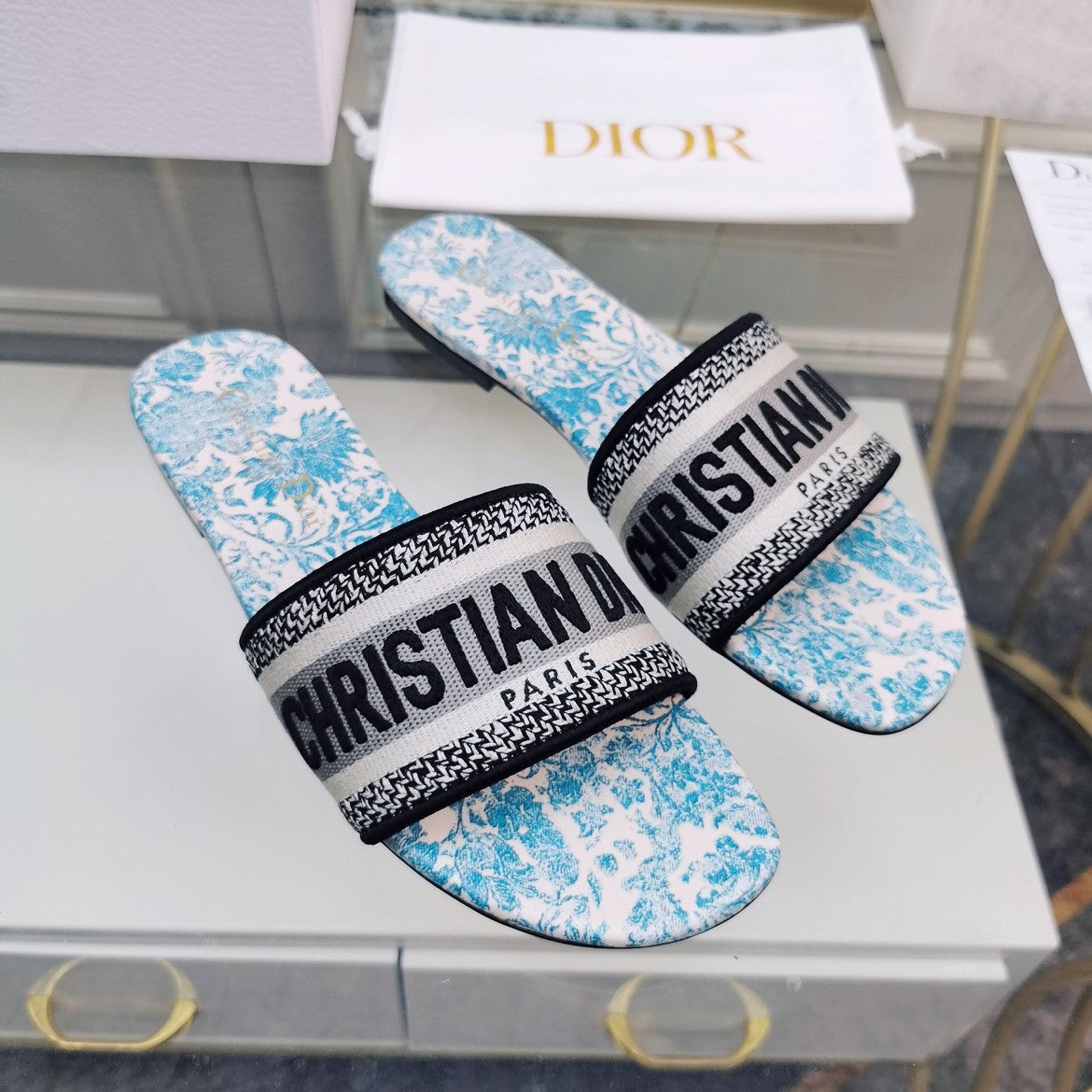 DWAY SLIDE EMBROIDERED COTTON AND LIGHT PINK MISS DIOR ALLOVER MOTIF
