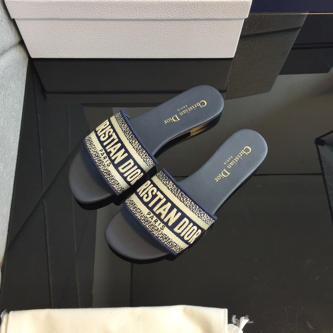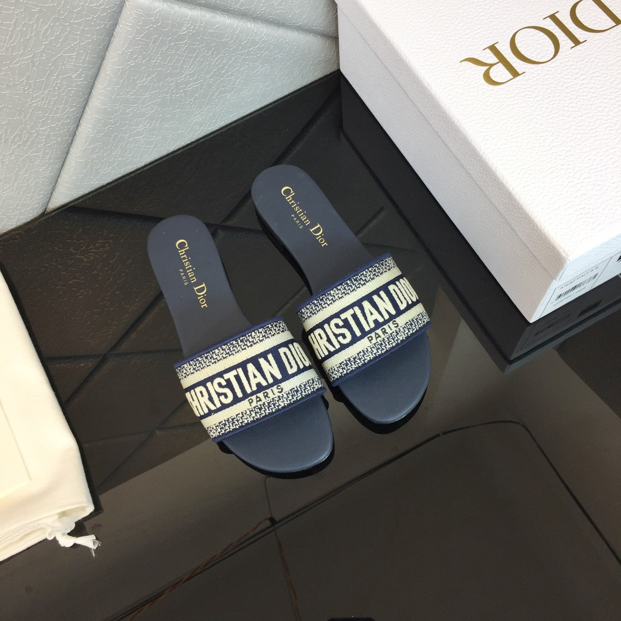 CD DWAY PLATFORM SLIDE IN BLACK AND WHITE COTTON EMBOSSED LOGO