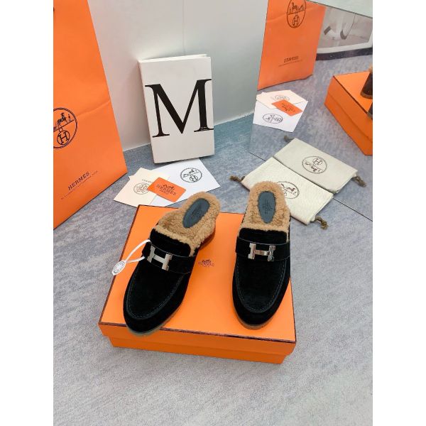 HORSEBIT MULE IN TAN BROWN SUEDE AND LAMB WOOL LINING