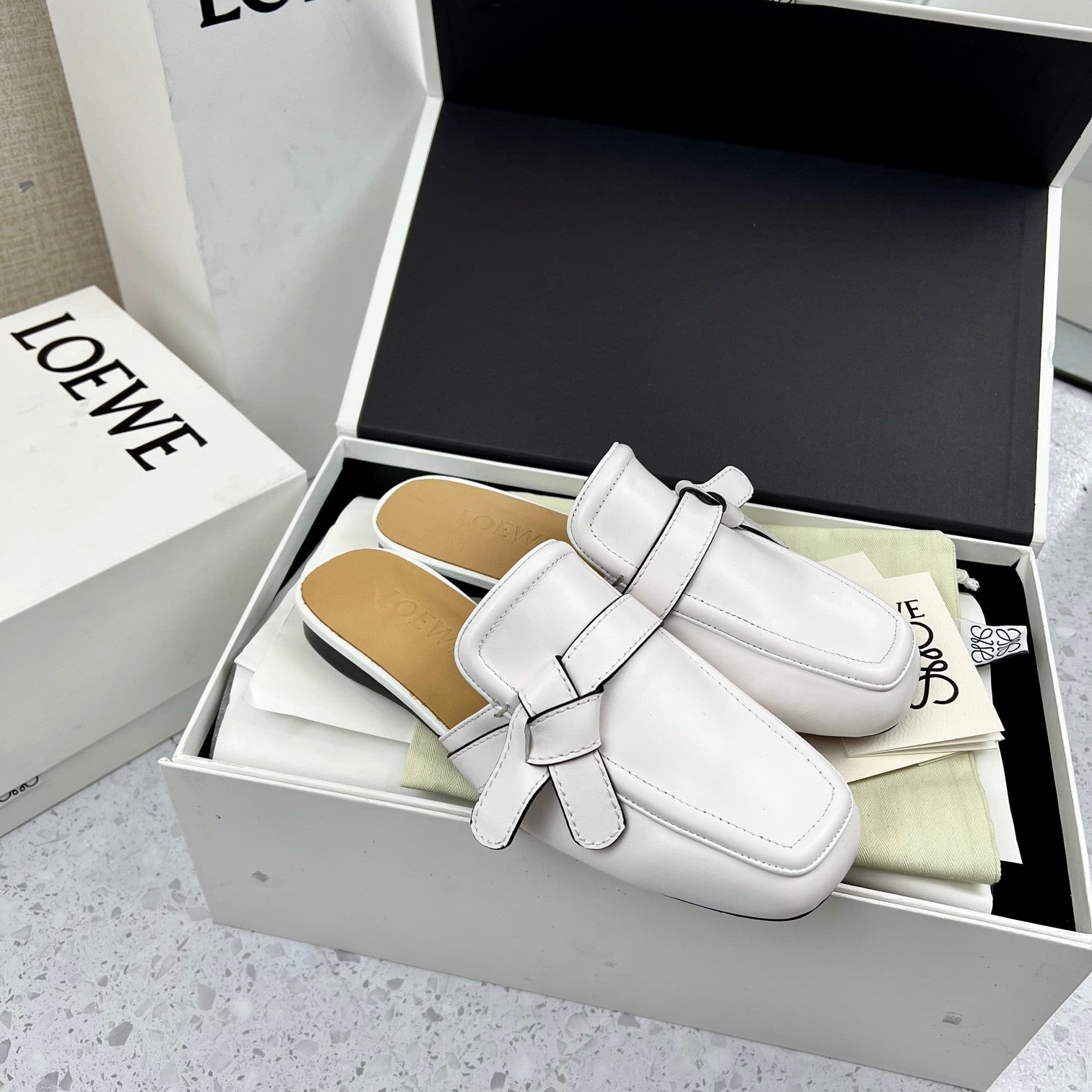 LW GATE BELTED MULE WHITE CALFSKIN