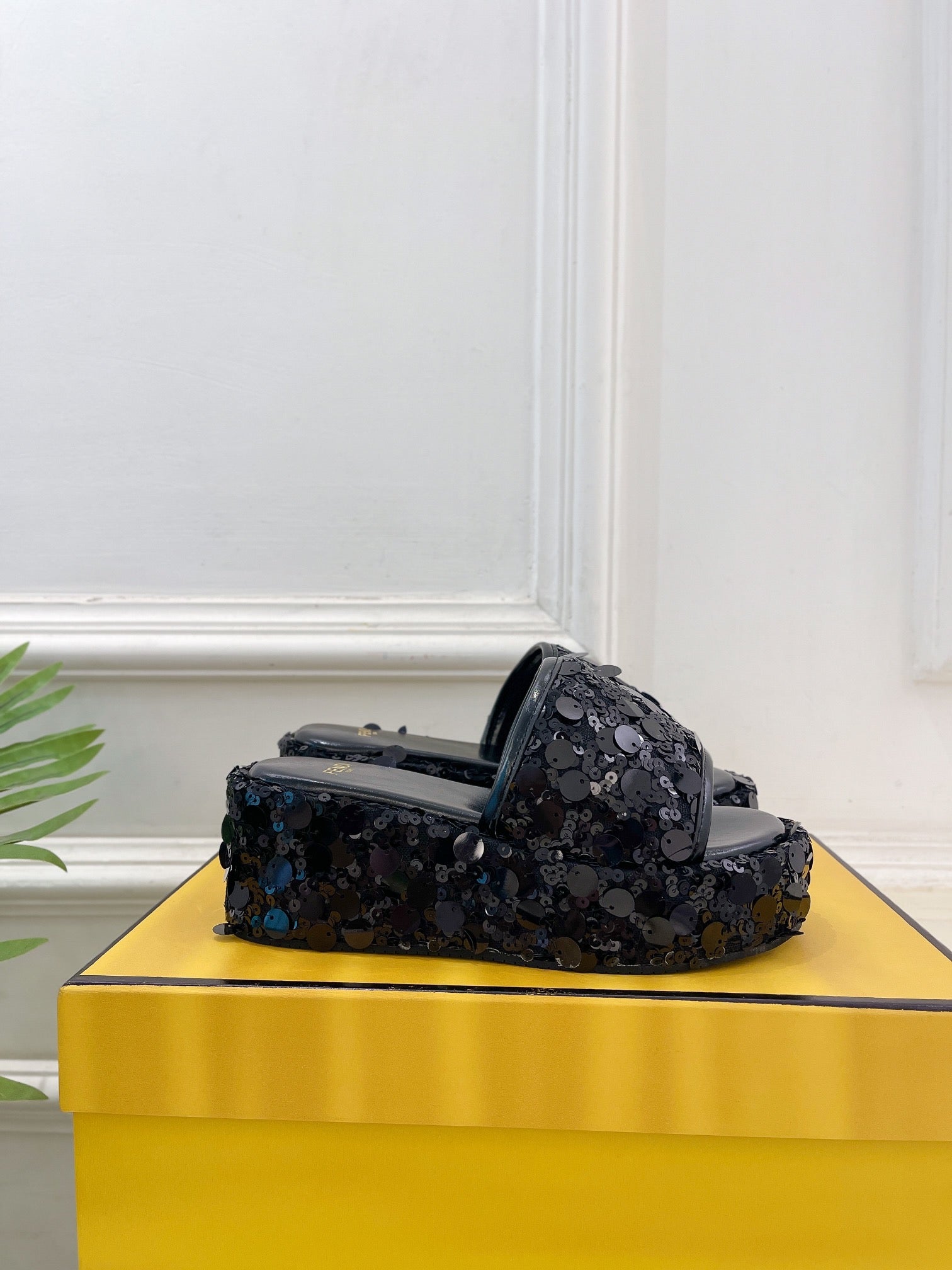 FENDI THICK SOLE 6 CM SEQUIN SLIPPER BLACK