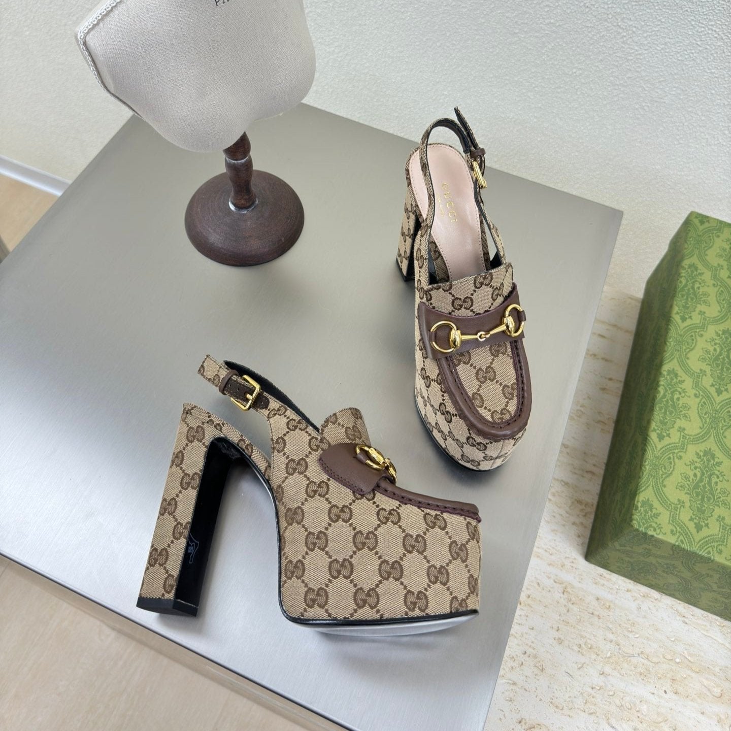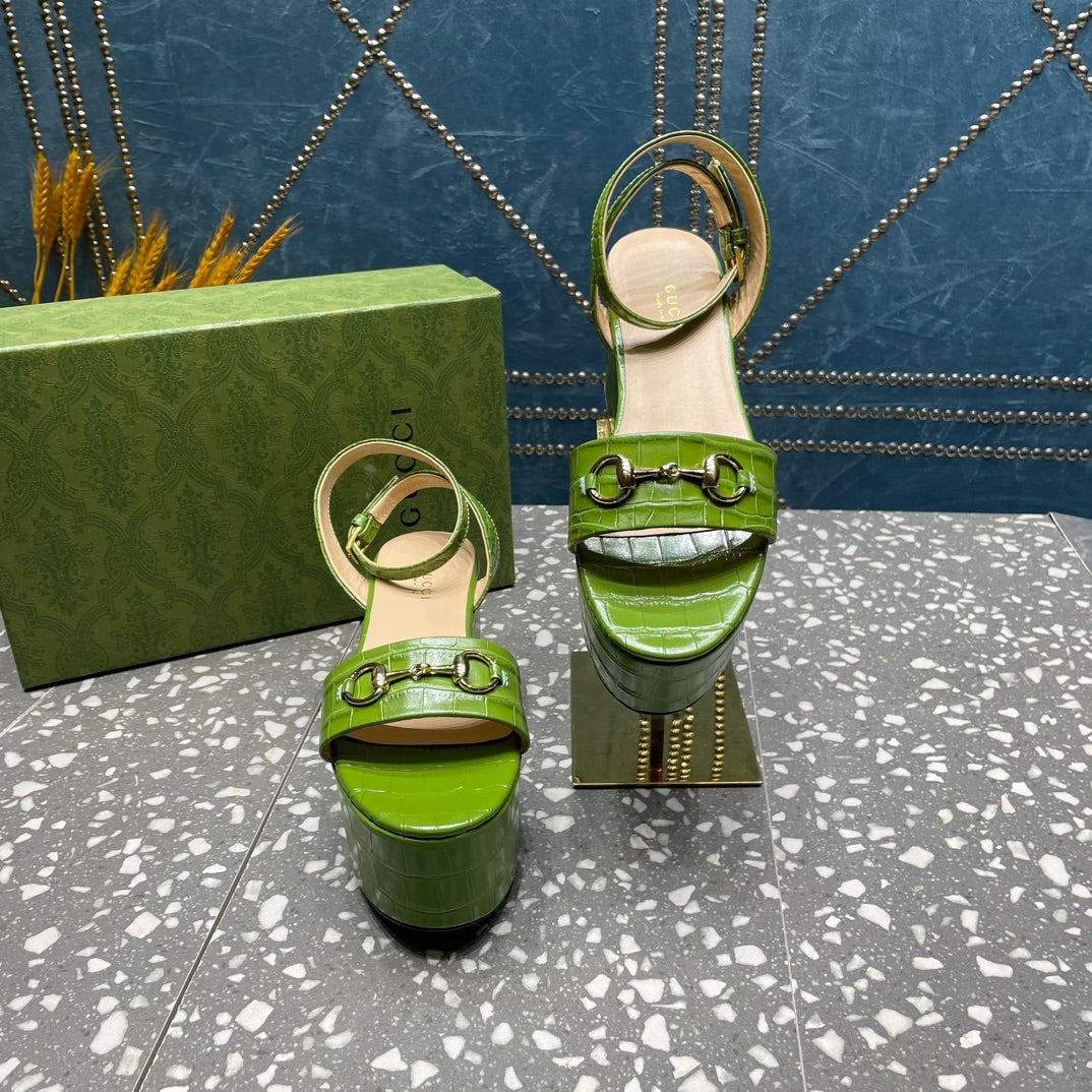 GG HORSEBIT PLATFORM SANDAL GREEN CALFSKIN