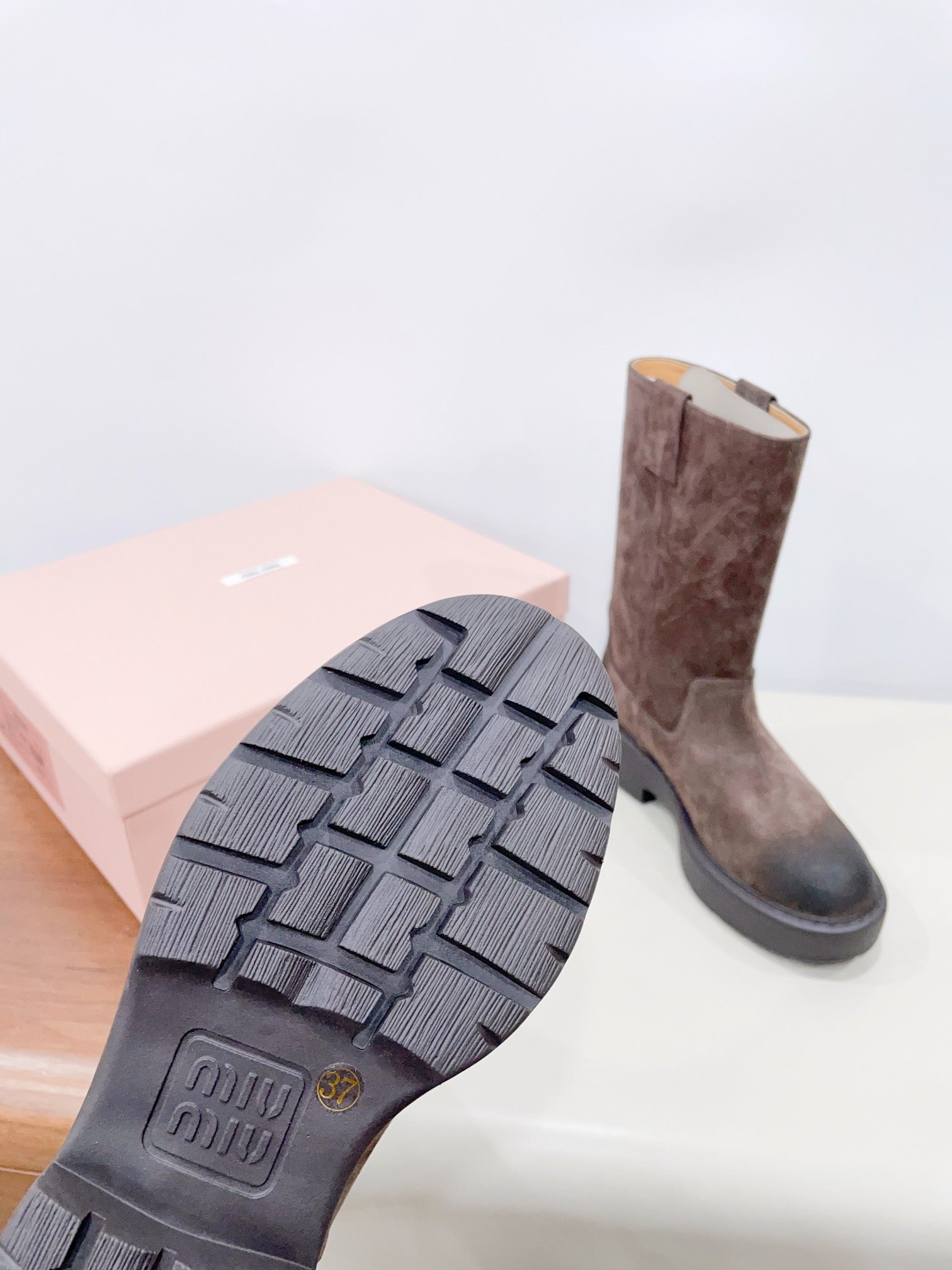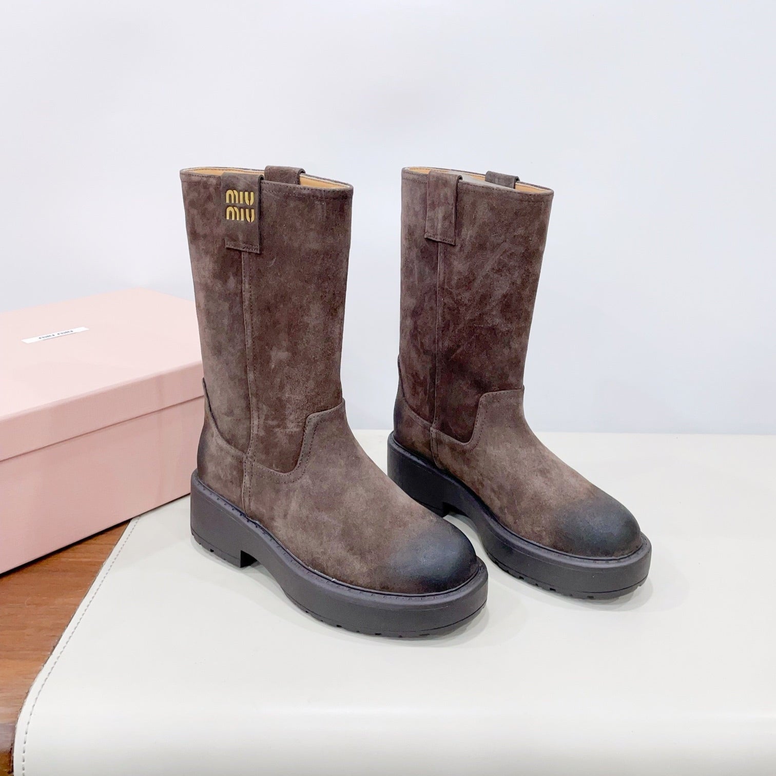 THICK-SOLED BOOTS IN COCOA BROWN SUEDE