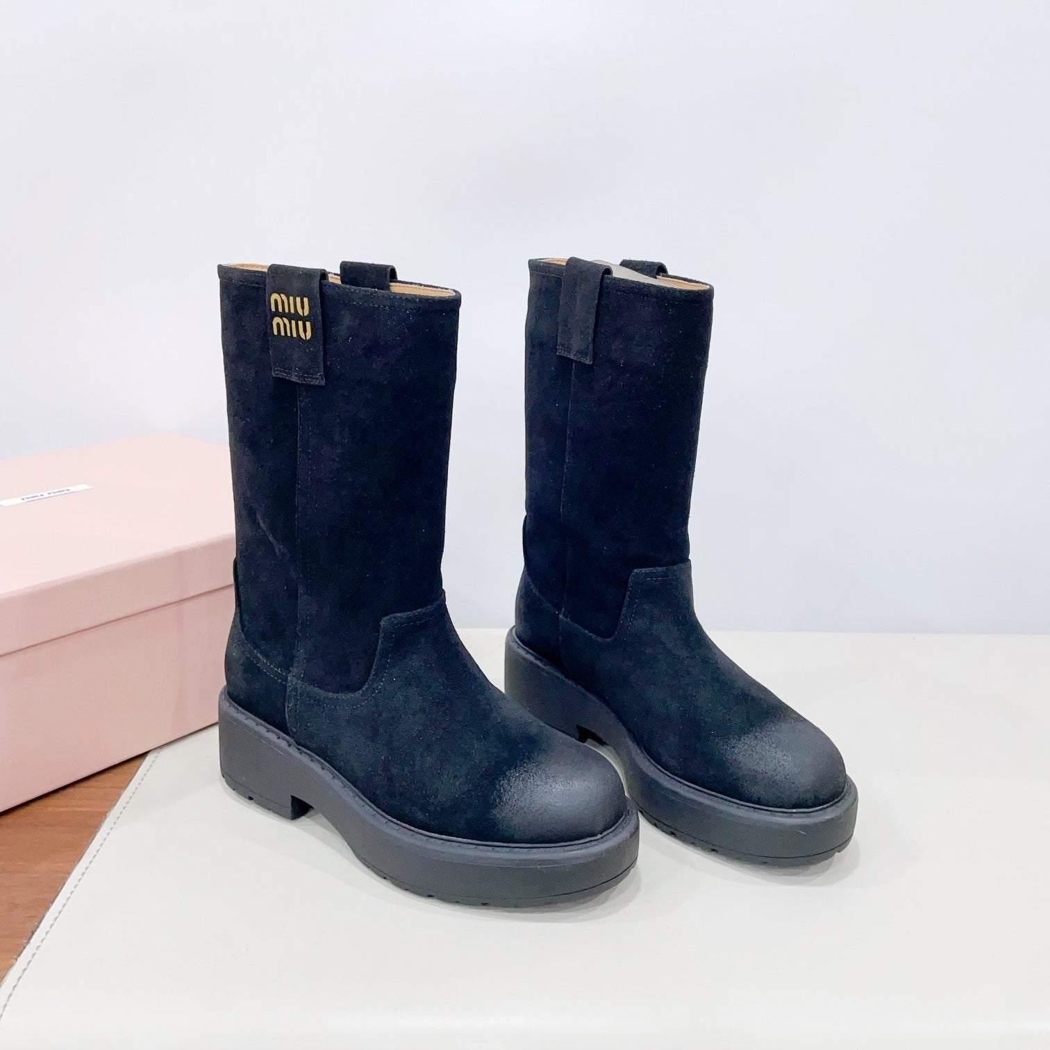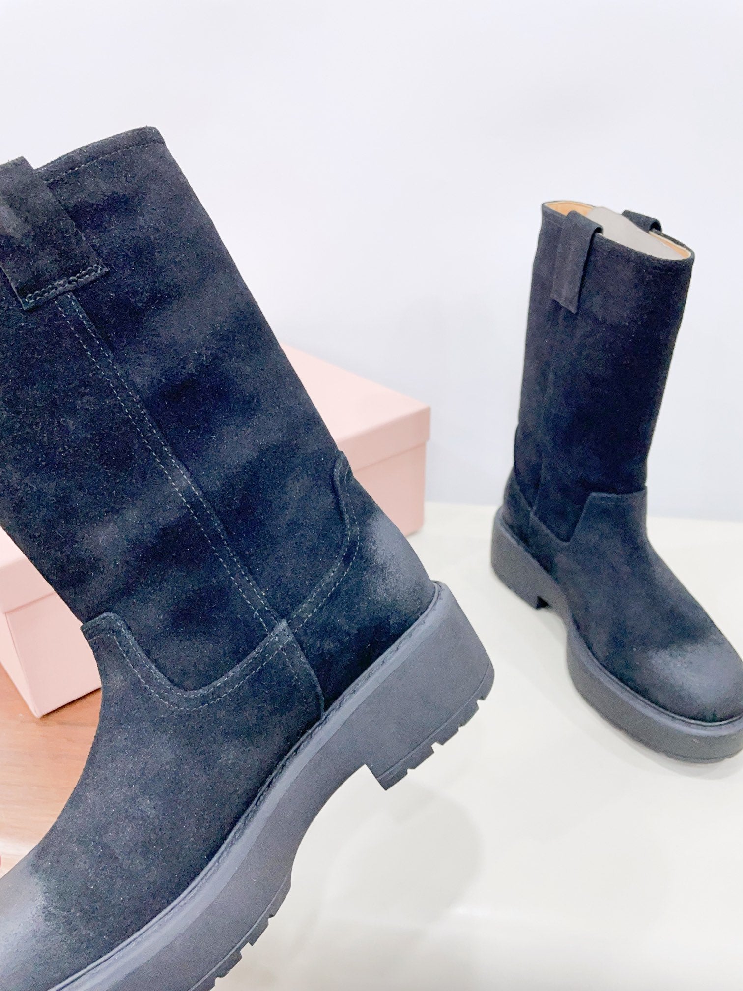 THICK-SOLED BOOTS IN BLACK SUEDE