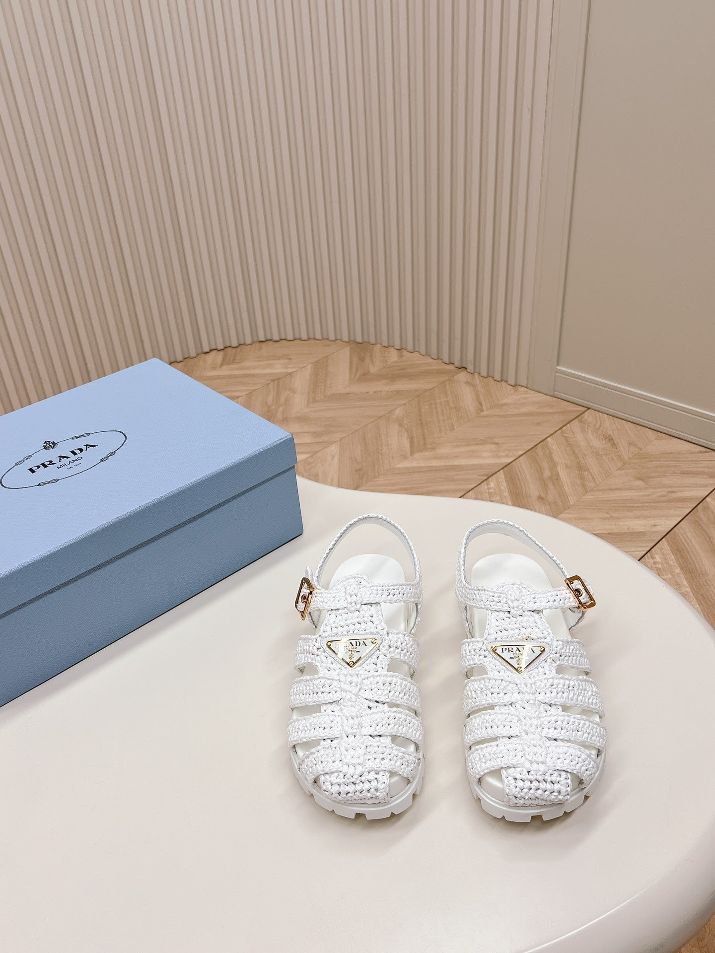 PRA WEDGE PLATFORM SANDALS WHITE CALFSKIN