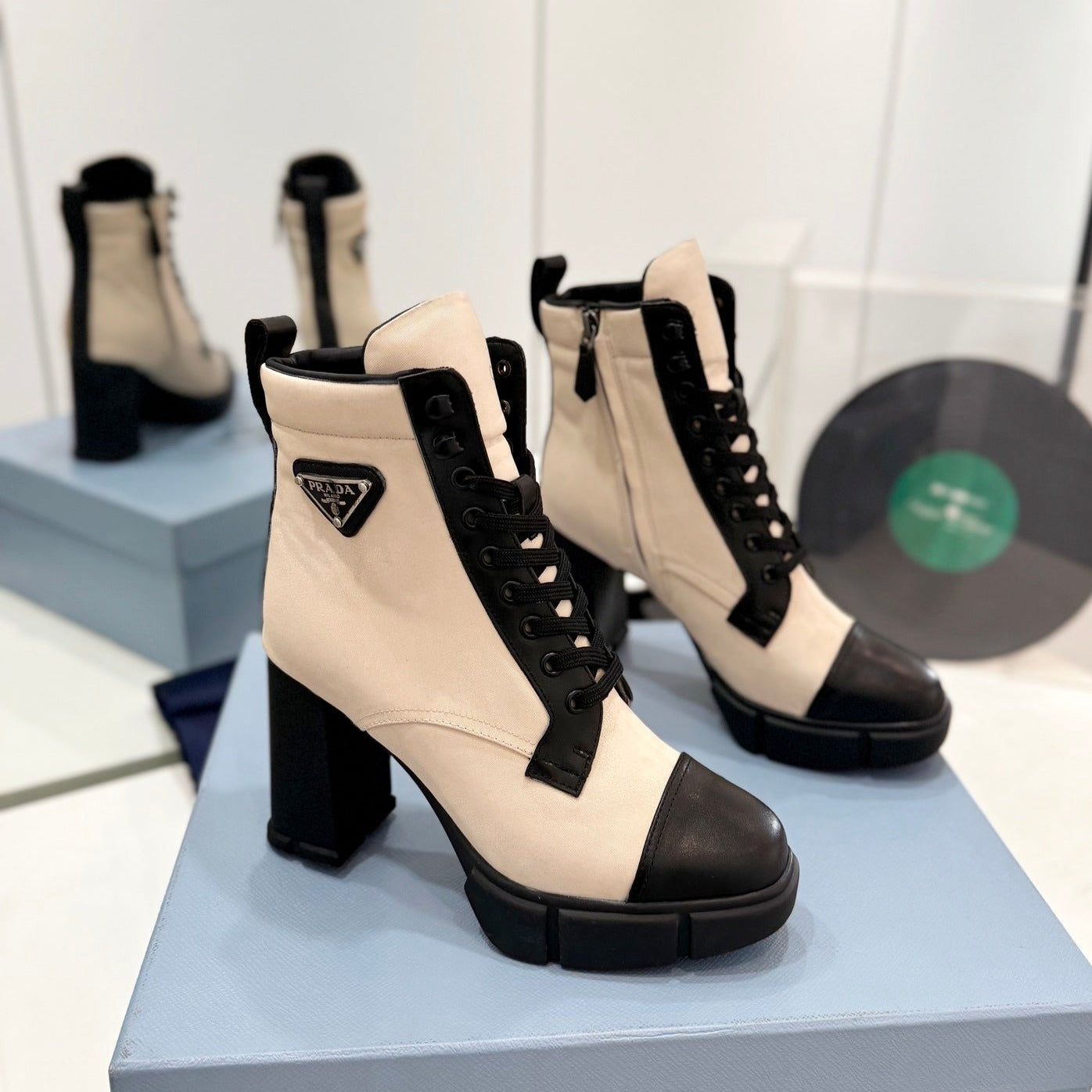 PRA BRUSHED LEATHER AND RE-NYLON LACED BOOTIES PASTEL PINK