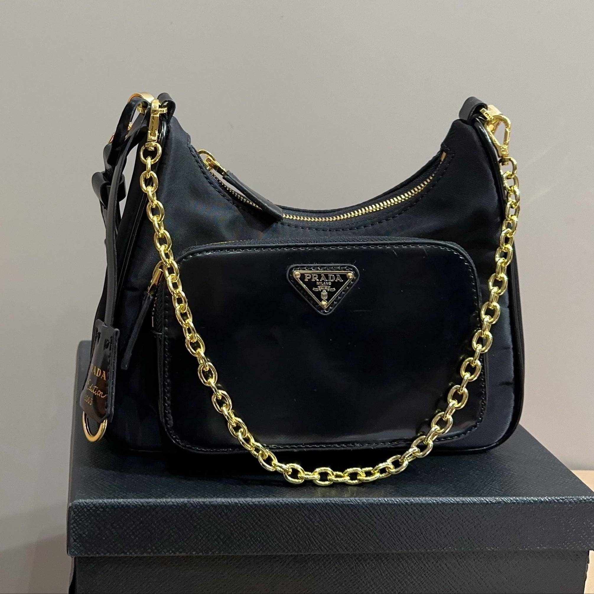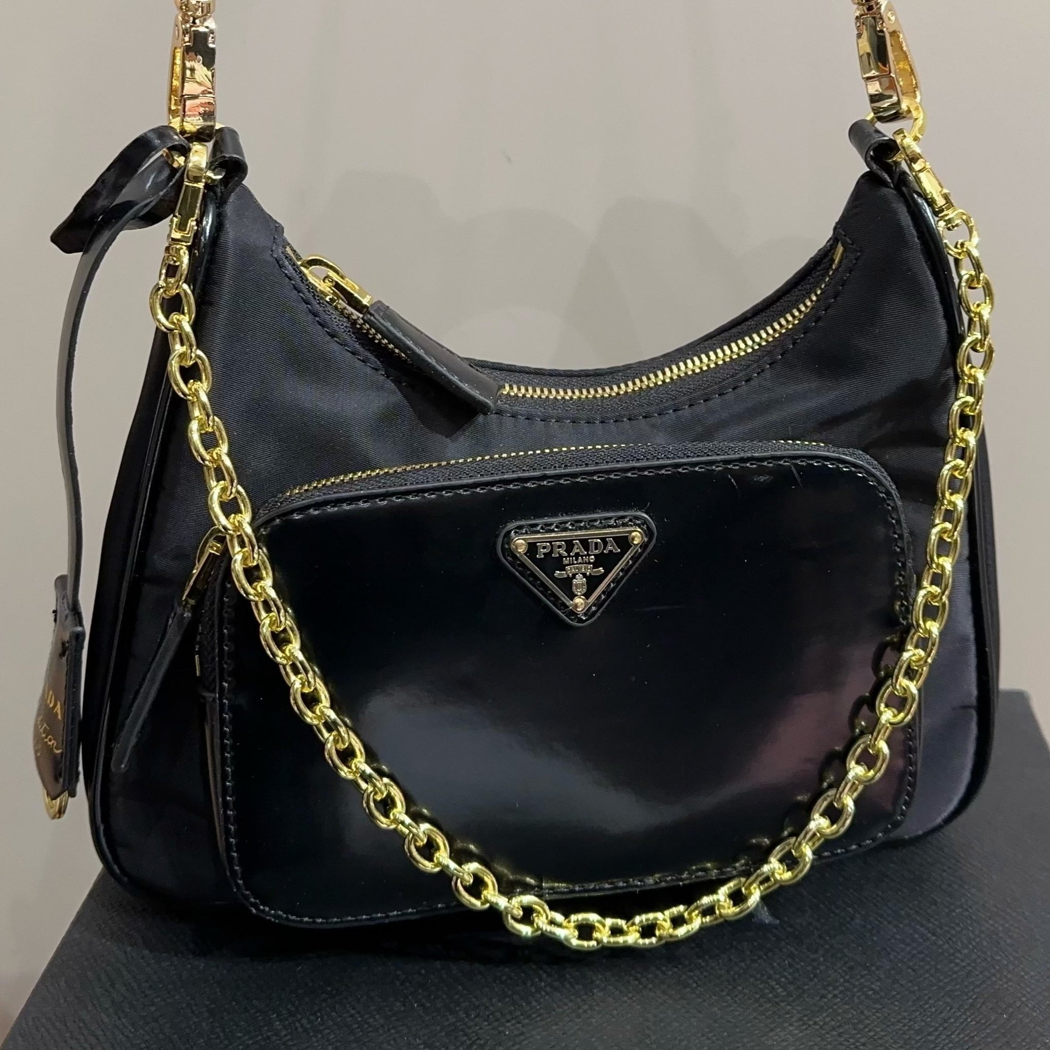• Material: Re-nylon and calfskin