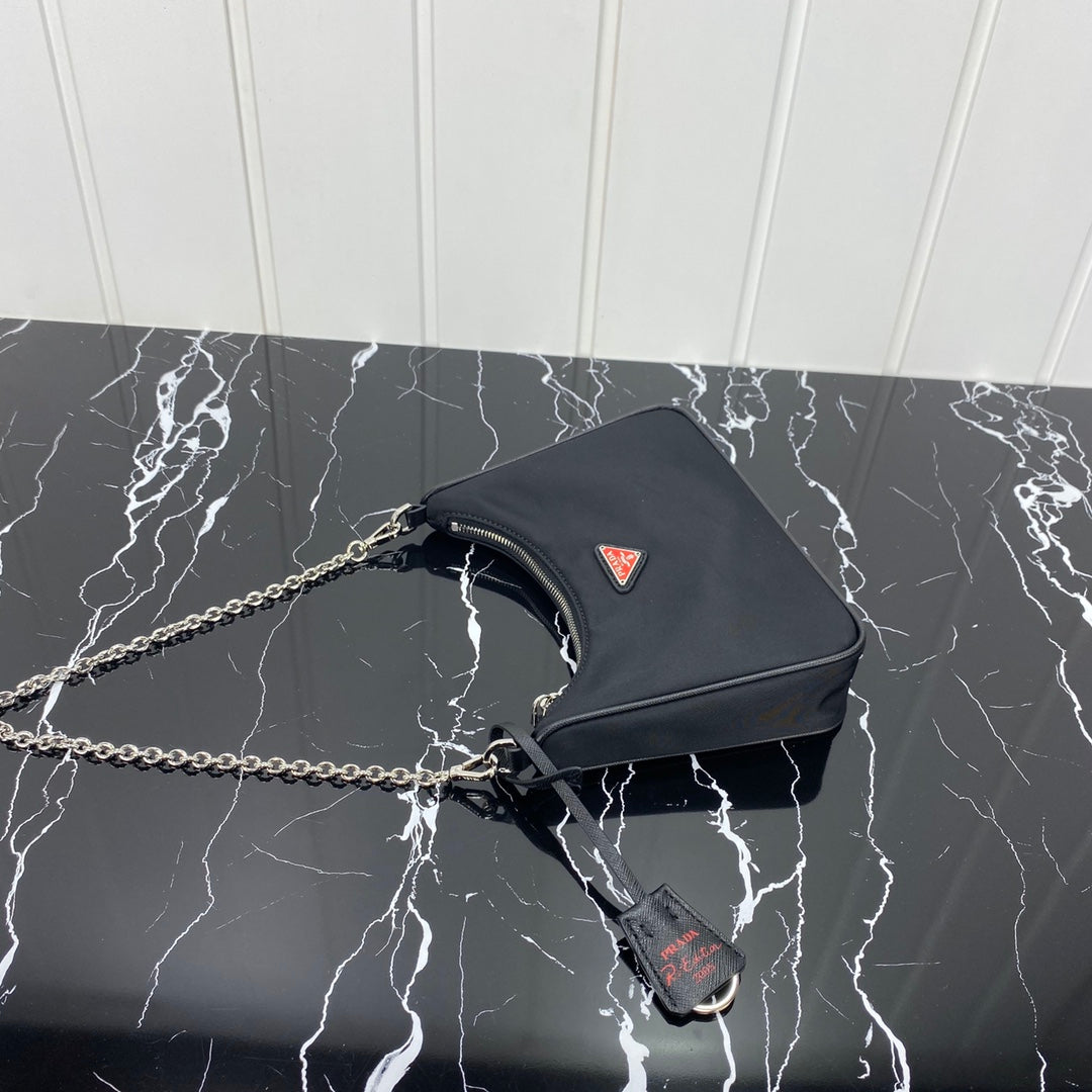 PRA HOBO 22 BAG IN BLACK RE-NYLON WITH RED LOGO
