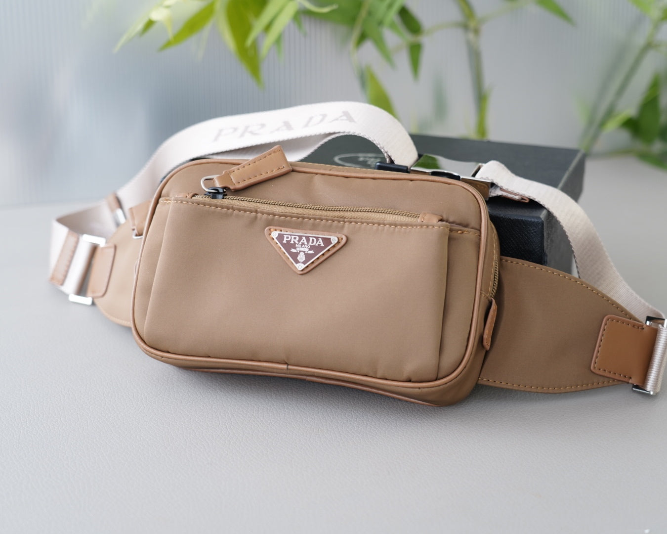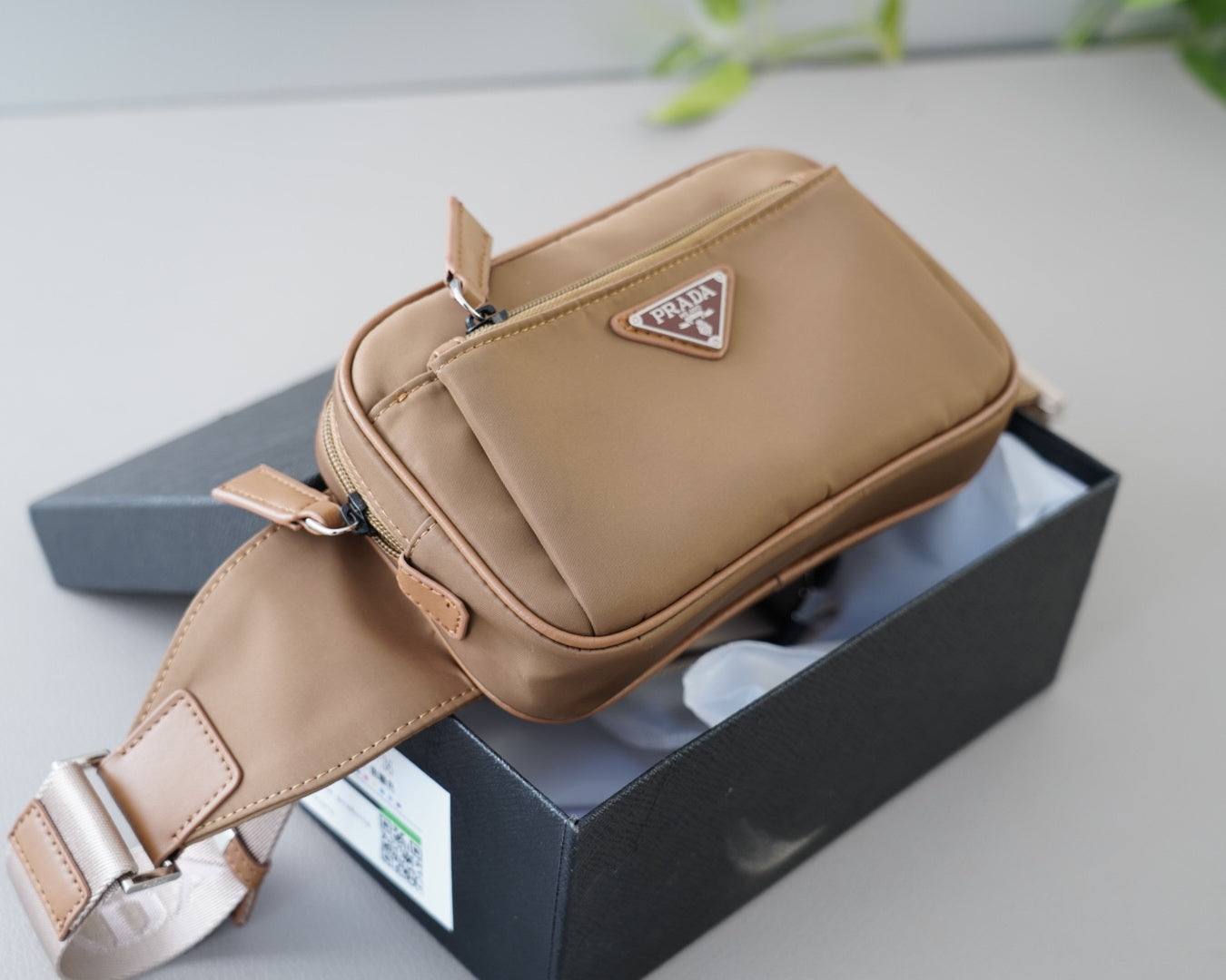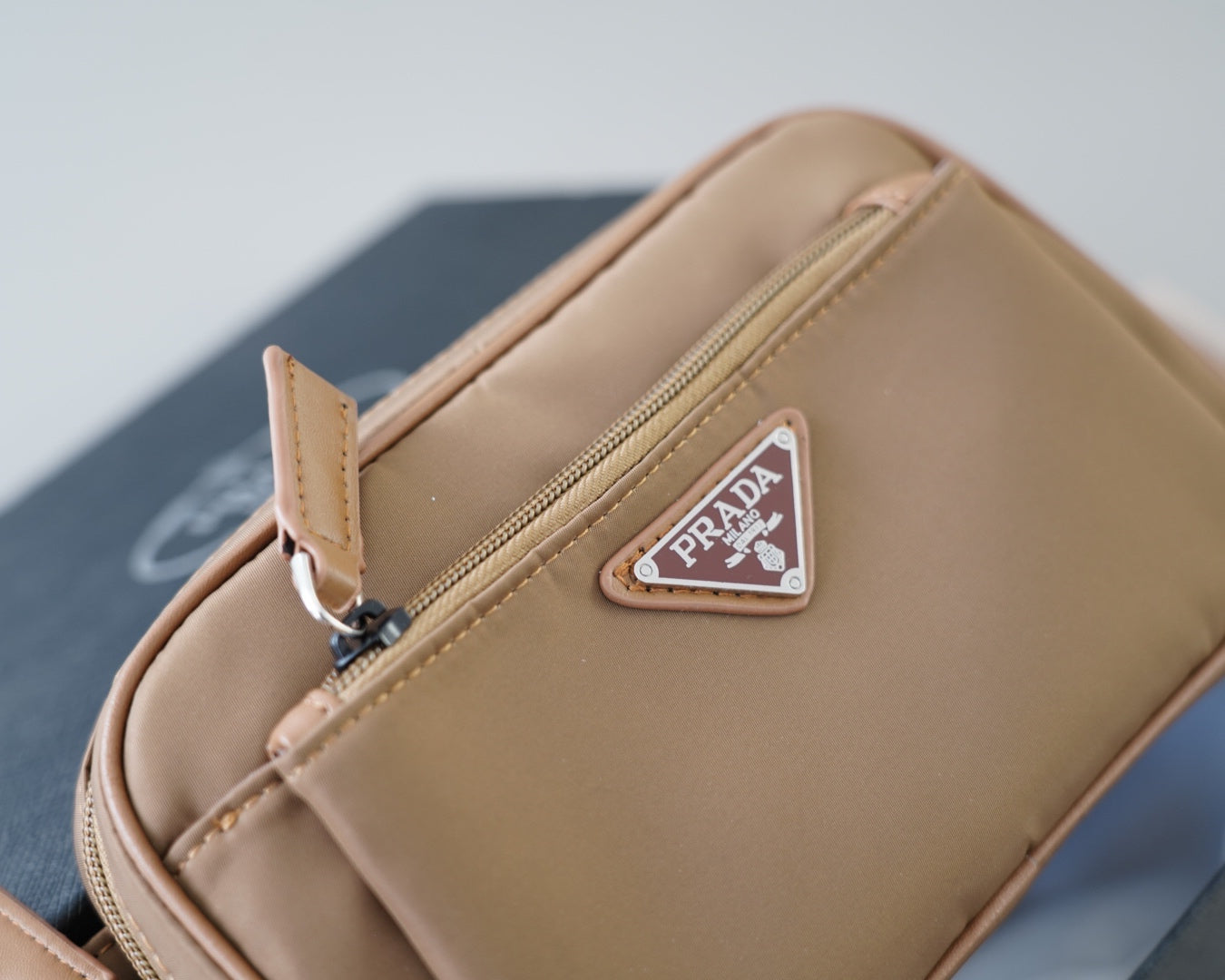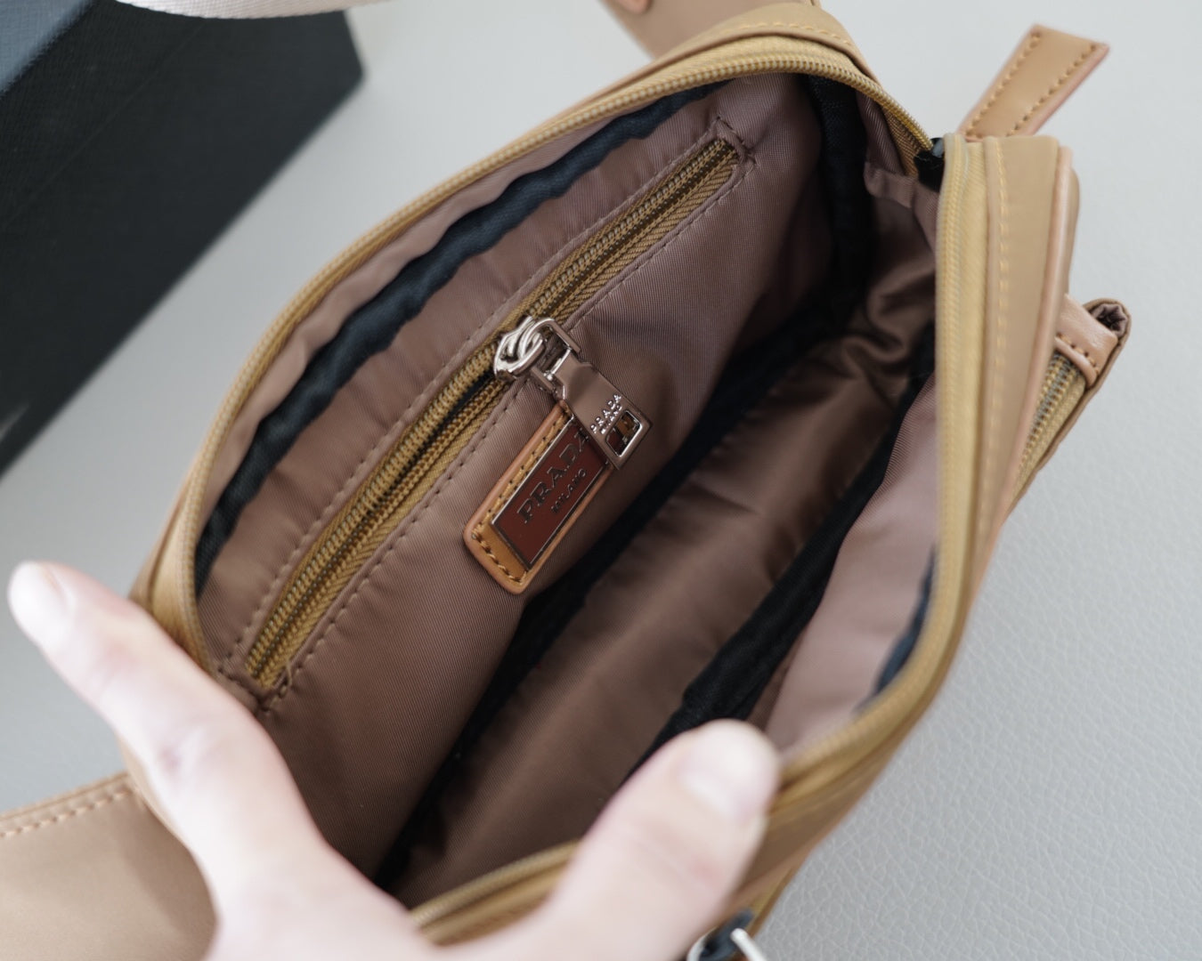 SHOULDER BAG 22 IN TAN BROWN RE-NYLON