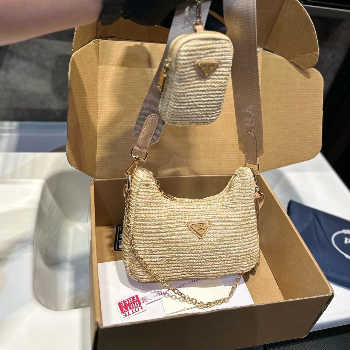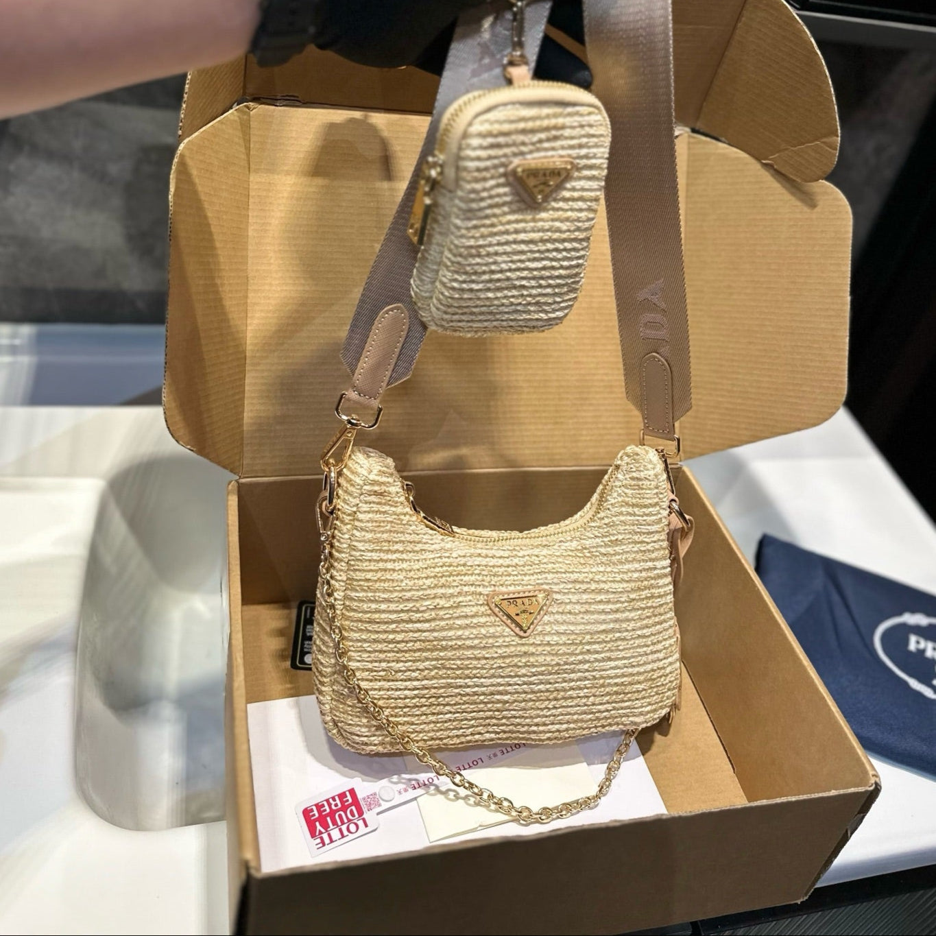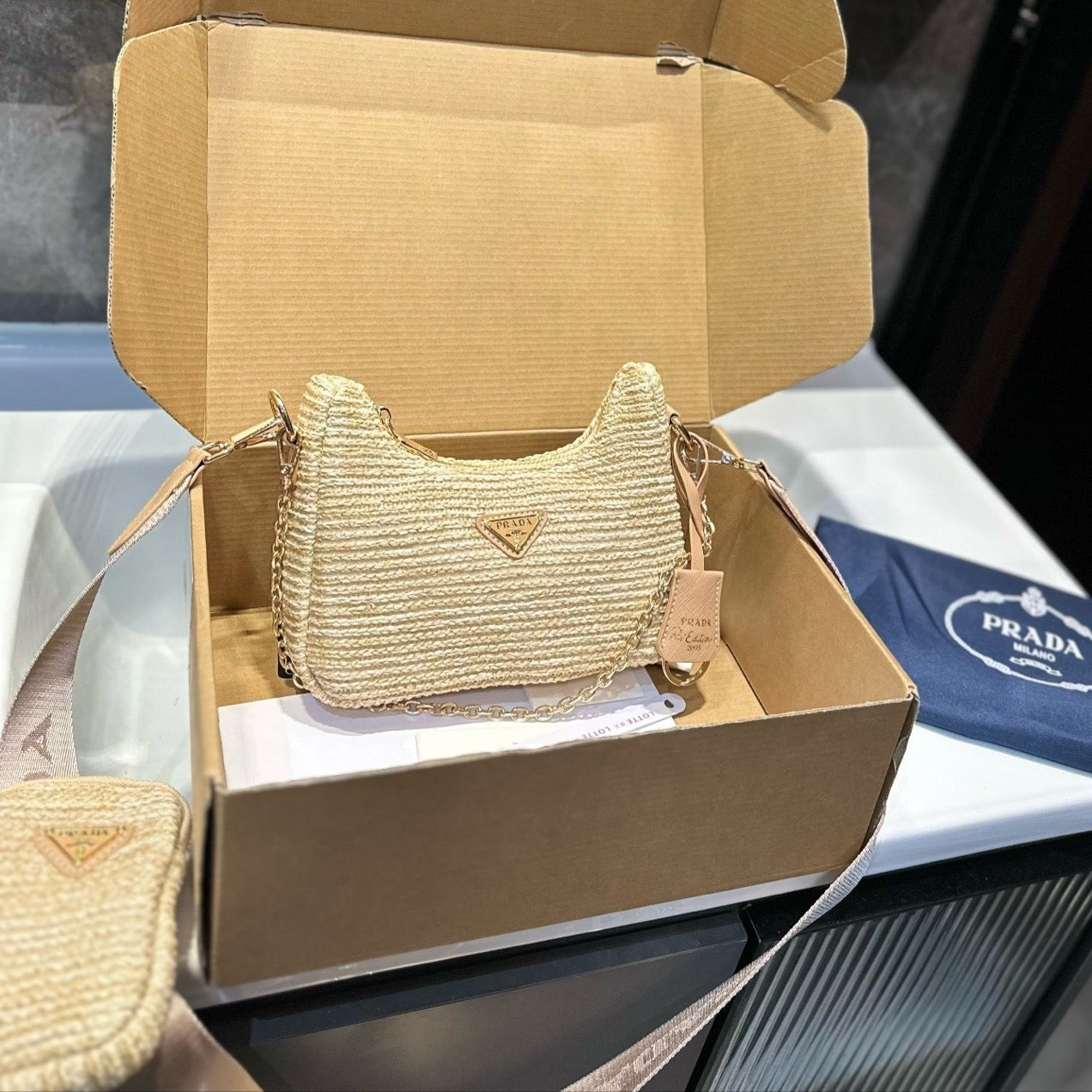 HOBO CROCHET MINI BAG 20 IN BEIGE WOVEN RAFFIA GOLD HARDWARE