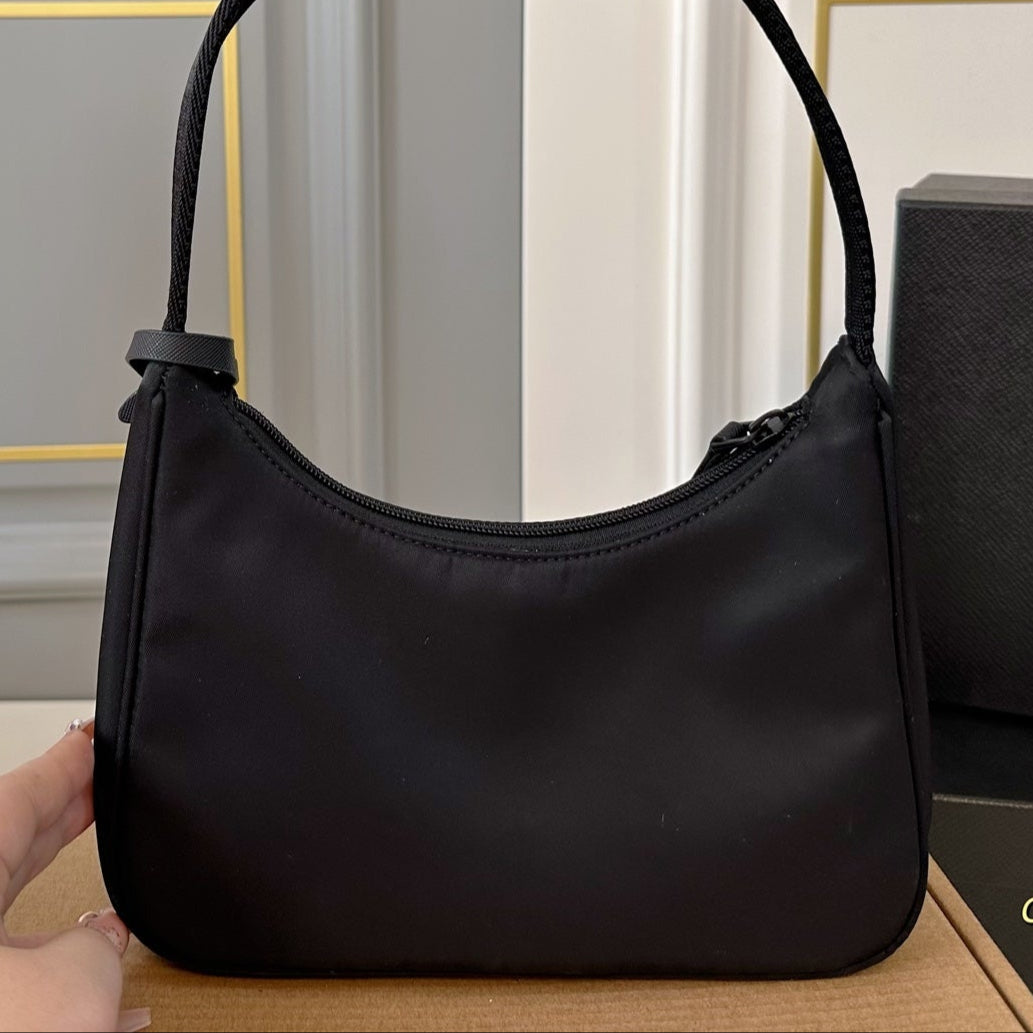 PRA CINI 23 MEDIUM BAG IN BLACK RE-NYLON WITH STRAP