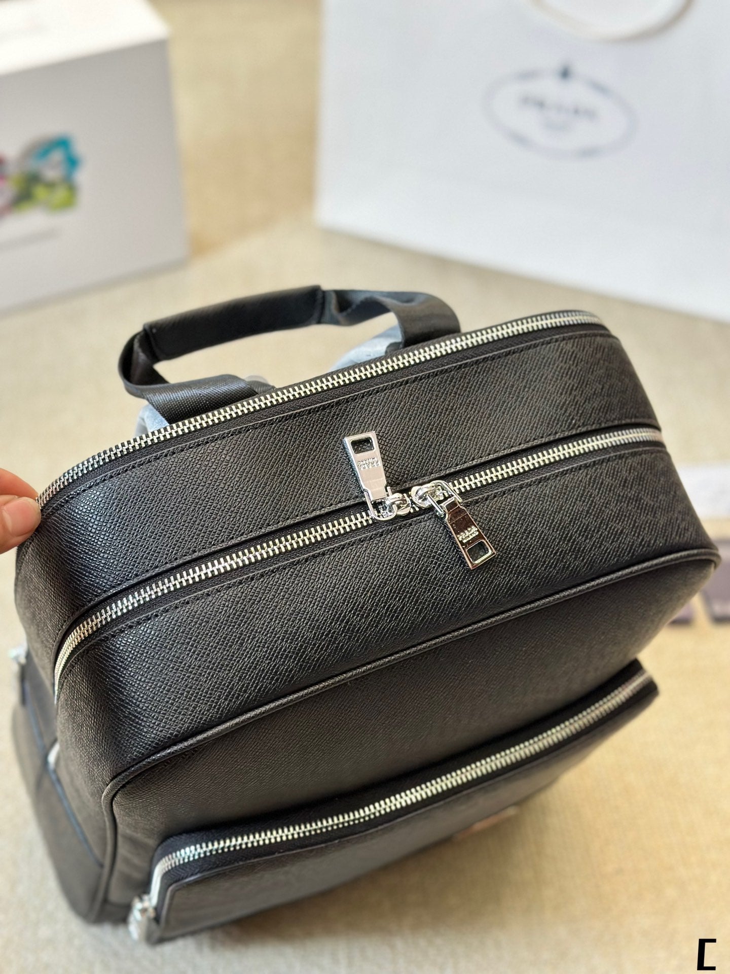 FRONT ZIP POCKET BACKPACK 38 IN BLACK GRAINED CALFSKIN