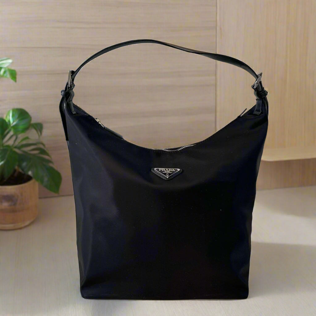 HOBO BAG 30 IN BLACK RE-NYLON SILVER HARDWARE