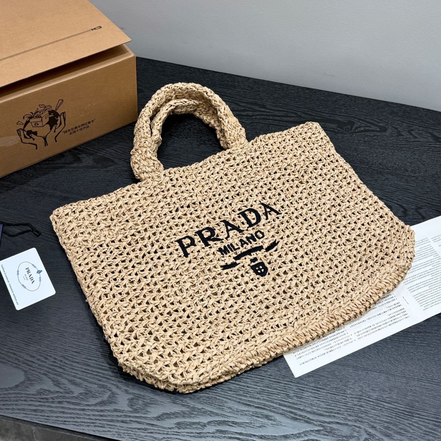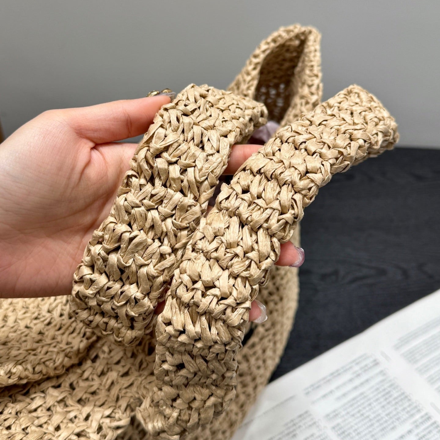 LARGE TOTE BAG 41 IN BEIGE MIX BLACK WOVEN RAFFIA