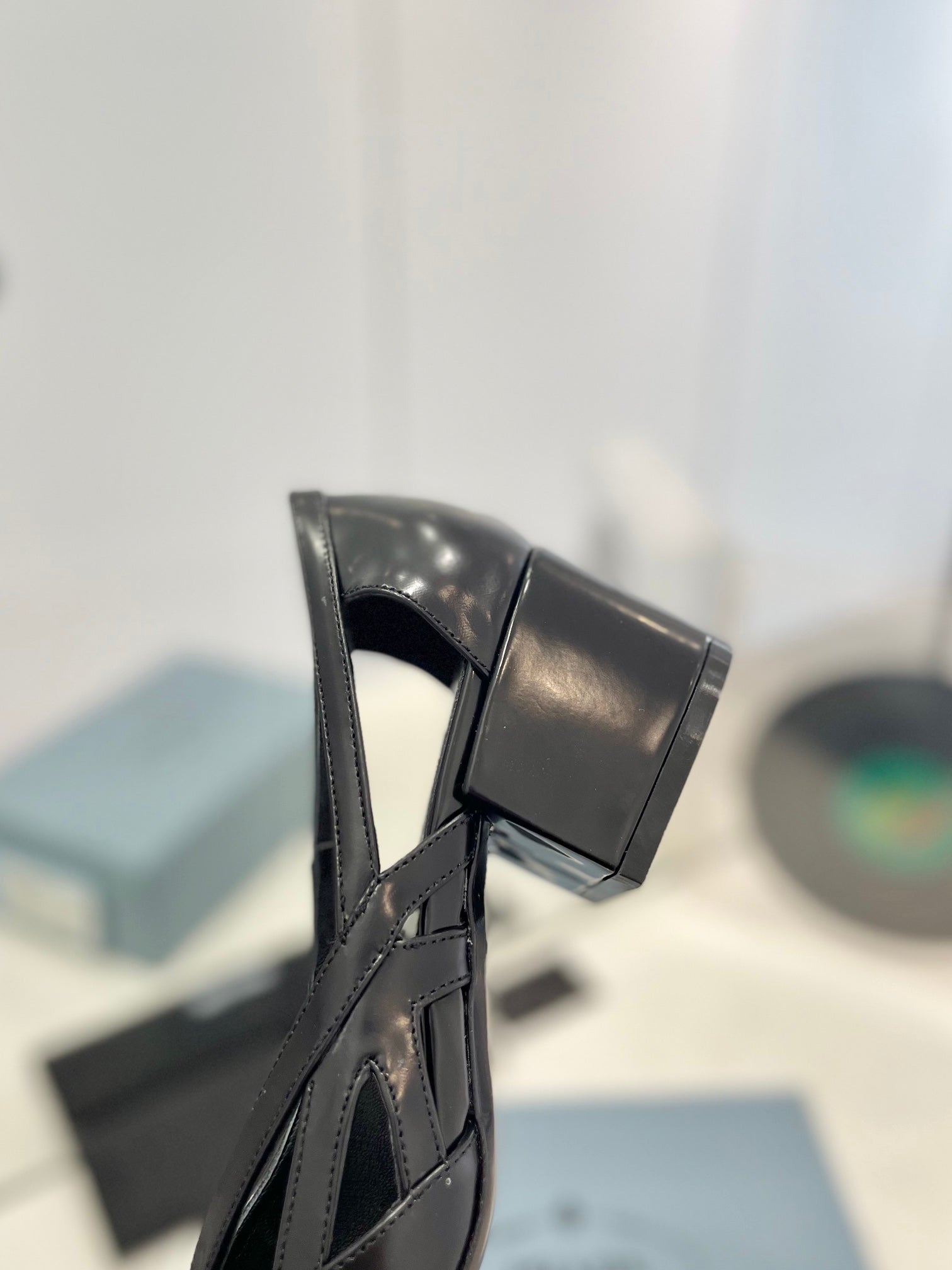 PRA STRAP CUT-OUT PUMPS BLACK CALFSKIN