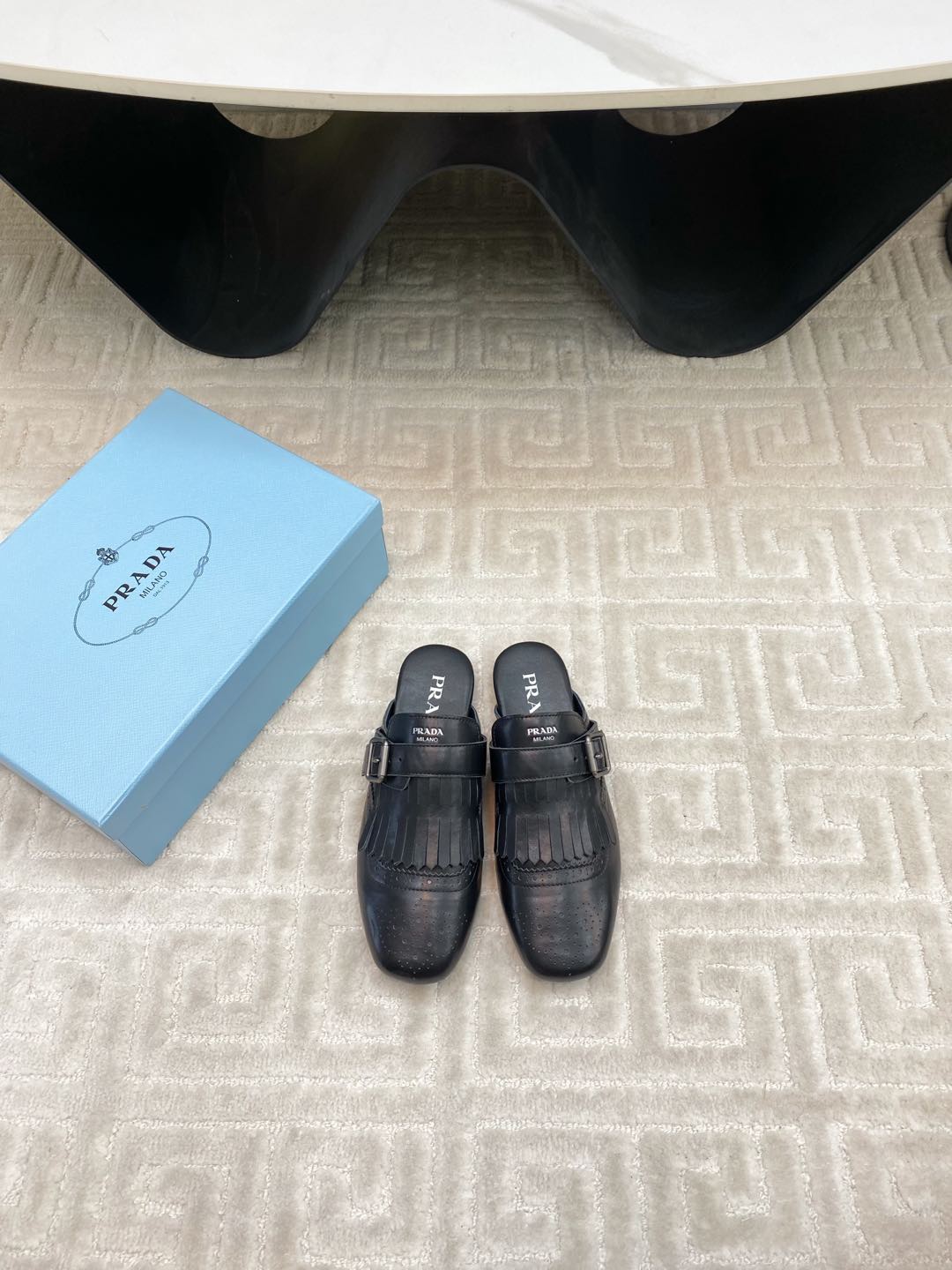 TASSEL MULES IN BLACK LAMBSKIN