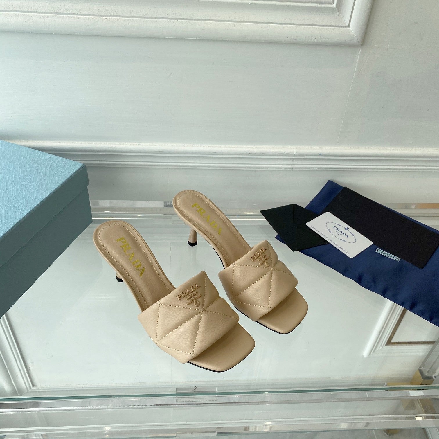 Pra Heeled Sandal 65 Pointed Sole Quilted Beige Leather