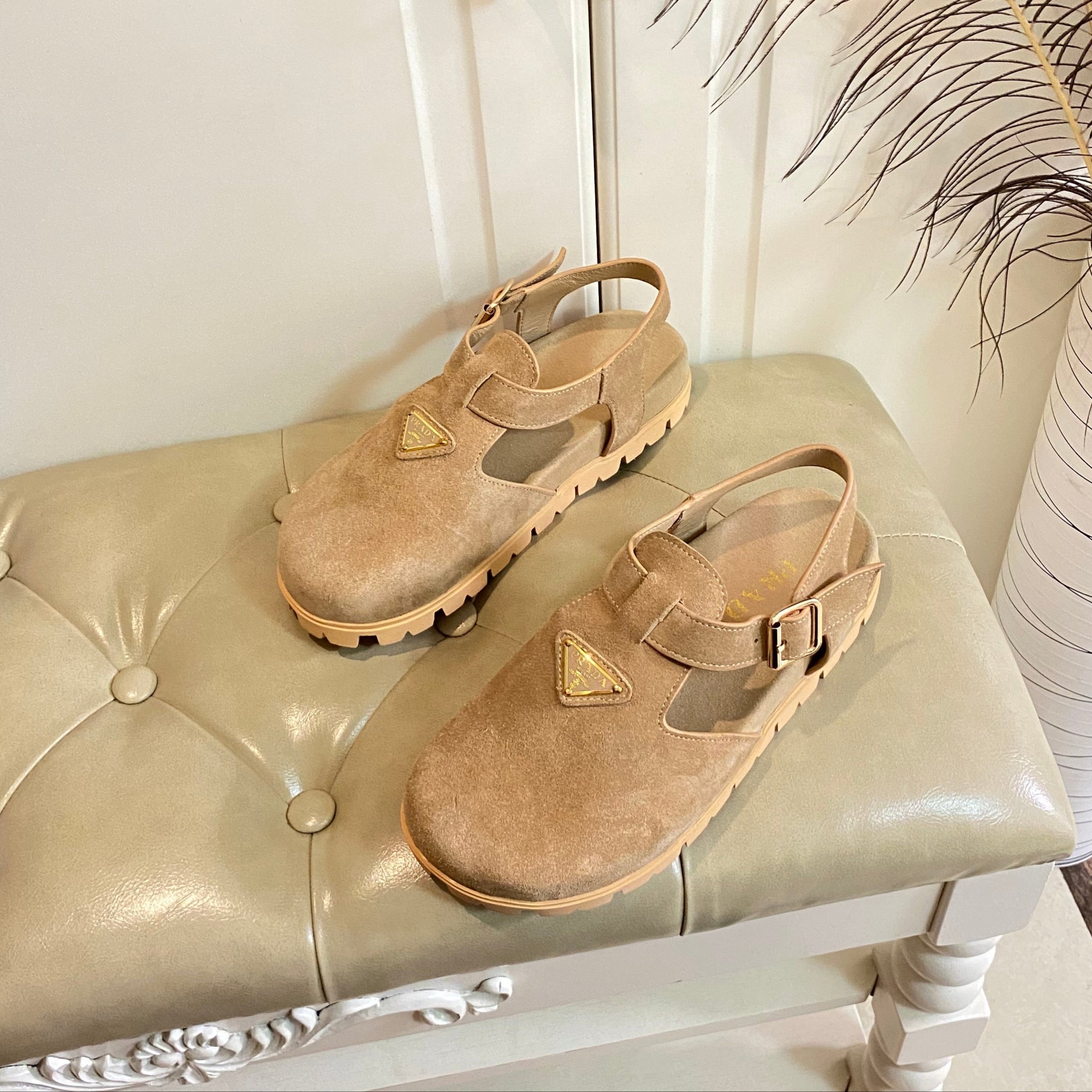 PRA STRAP SLIDES SANDALS BEIGE SUEDE
