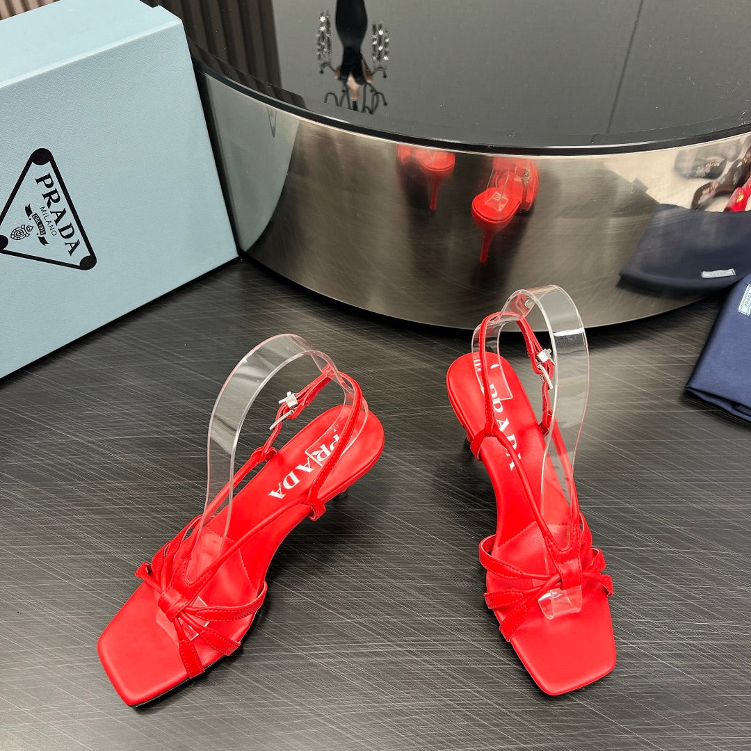 PRA TRIANGLE HEEL SATIN SANDALS CRIMSON