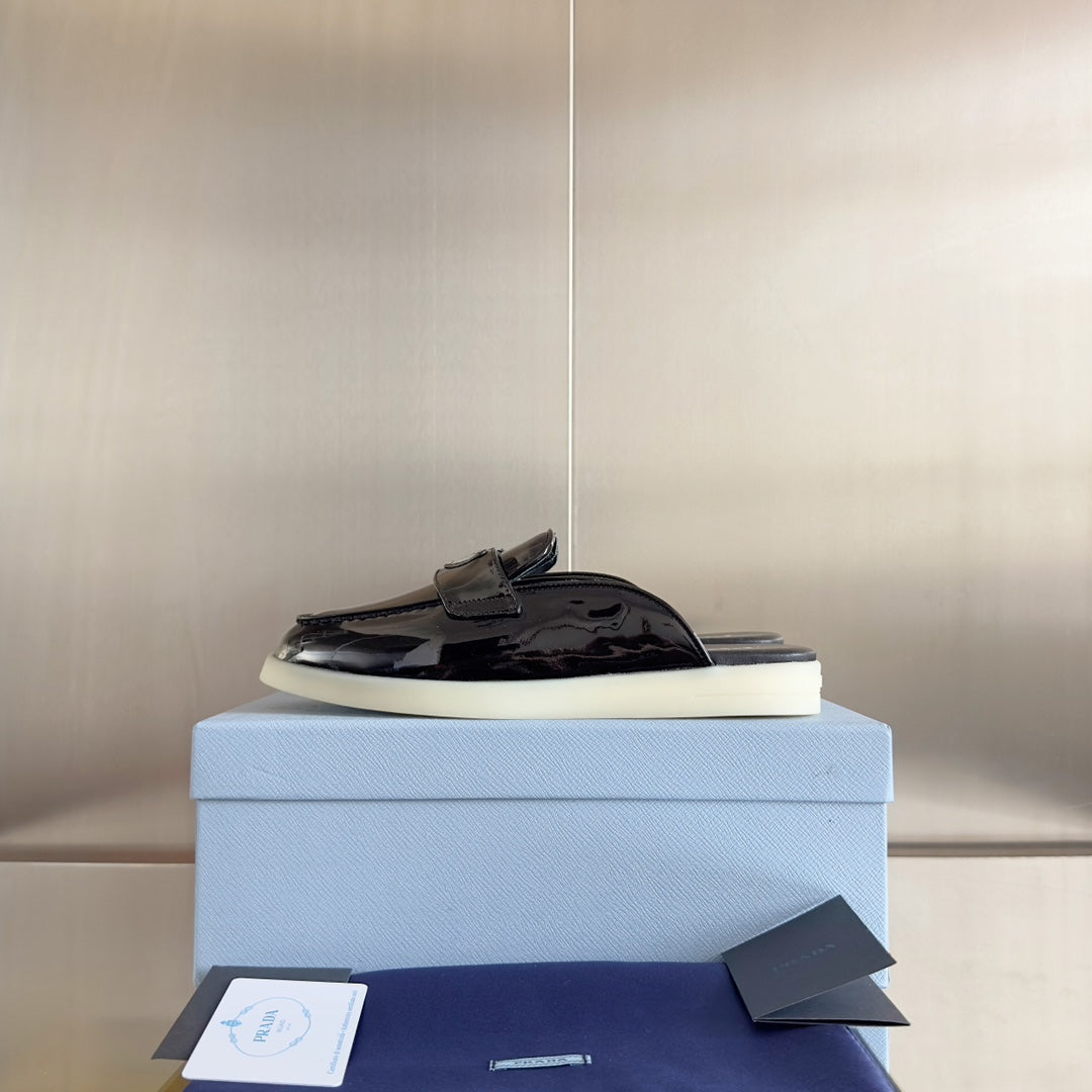 Pra Black Patent Leather Mule 25mm Rubber Sole
