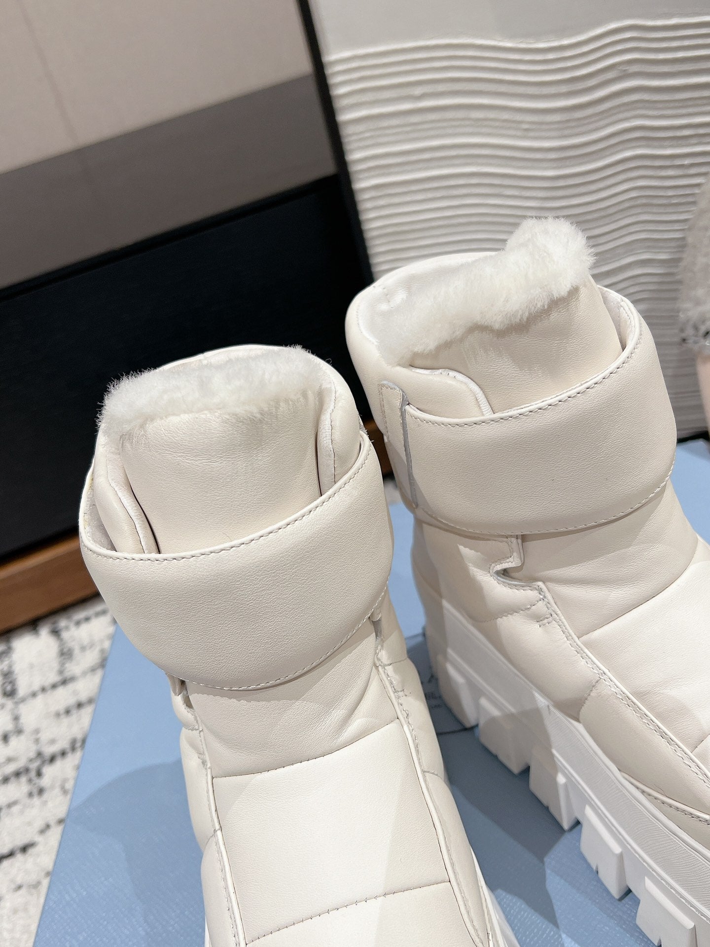 MONOLITH ANKLE BOOTS WITH STRAP IN RICE WHITE CALFSKIN AND FLEECE LINING
