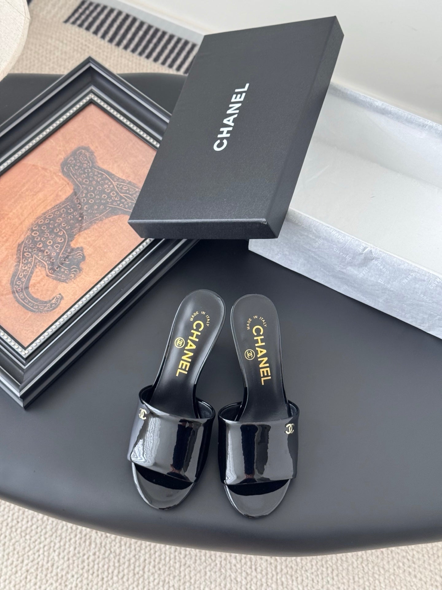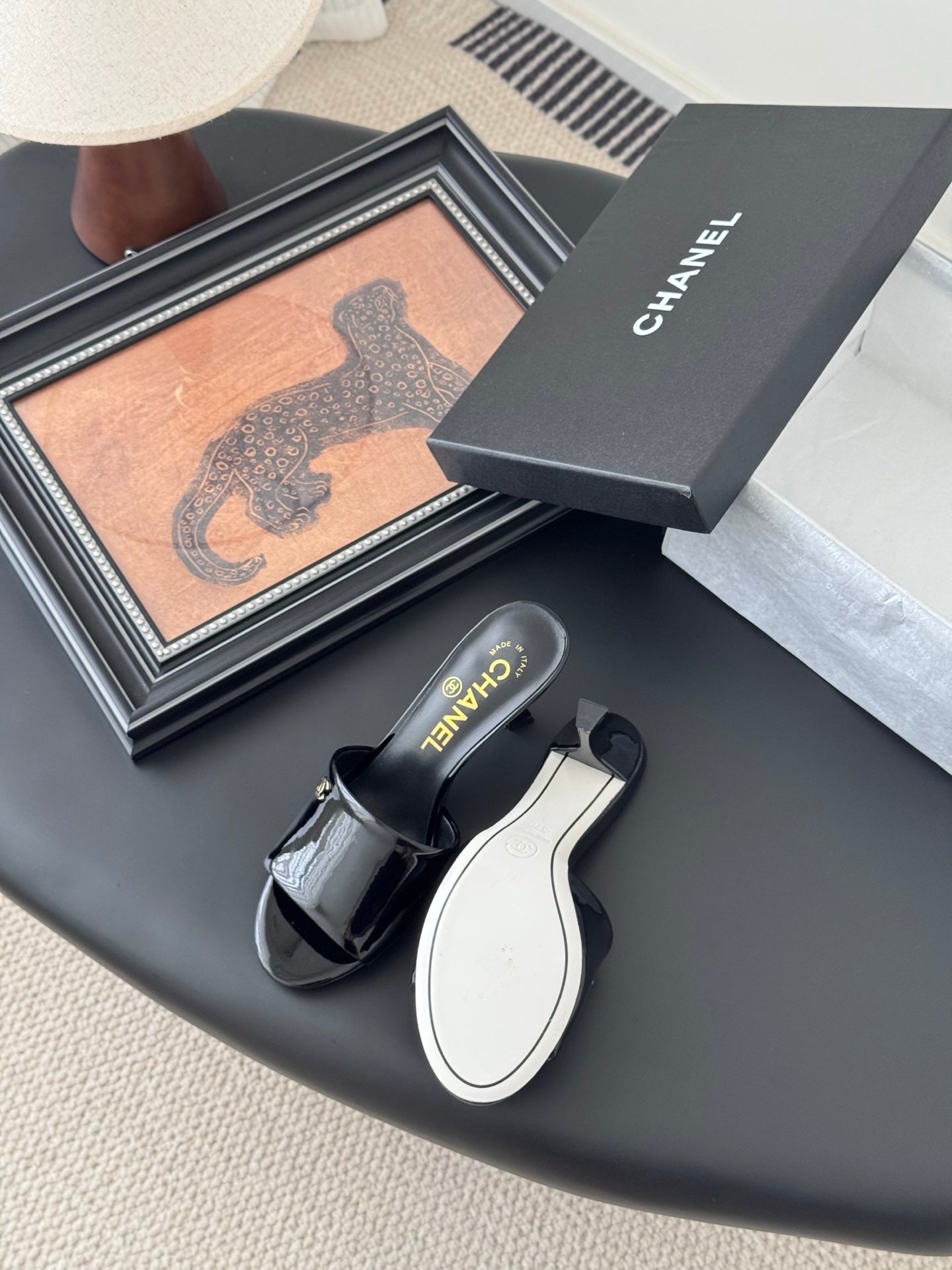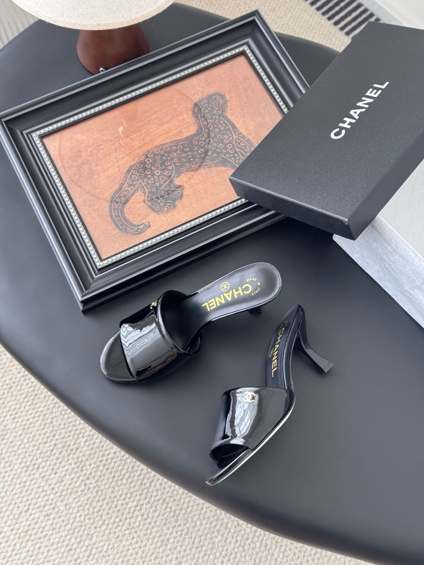 • Material: glossy leather