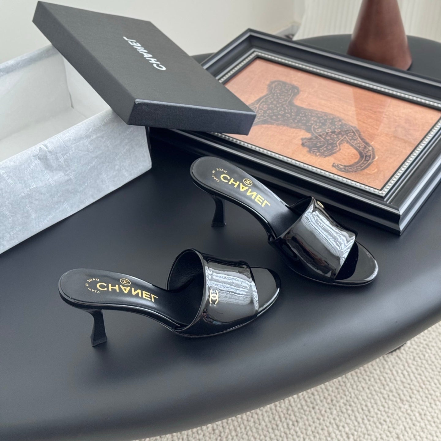 HIGH HEELS IN BLACK GLOSSY LEATHER