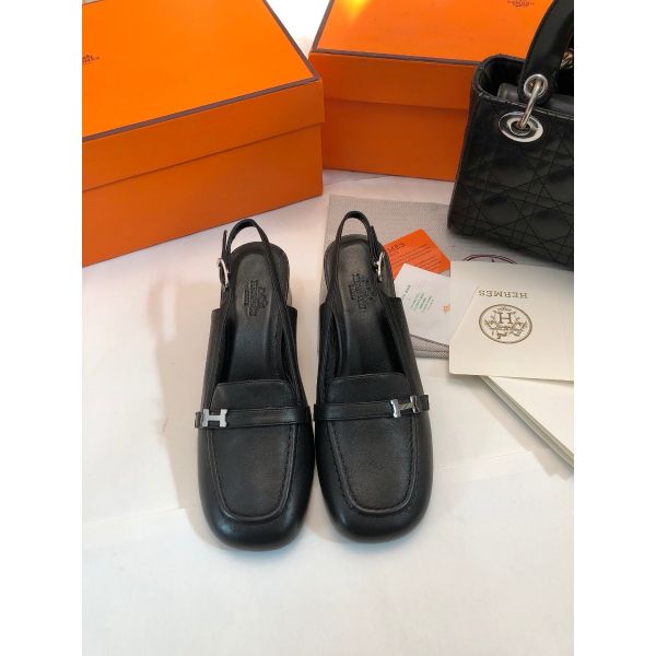 HERM Infinie 50 Slingback Pumps in Black Leather