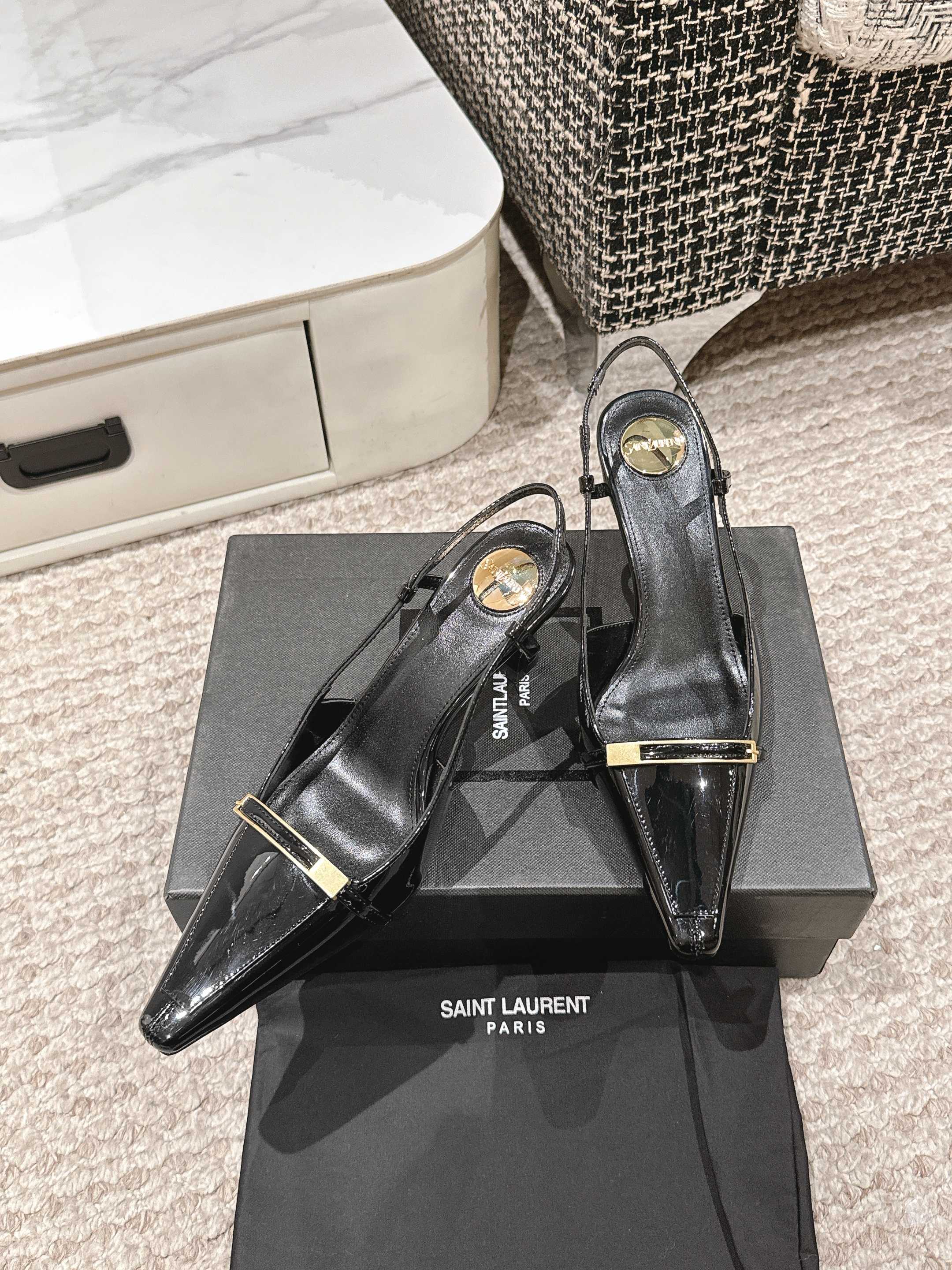HIGH HEEL 7 CM SLINGBACK IN BLACK PATENT CALFSKIN