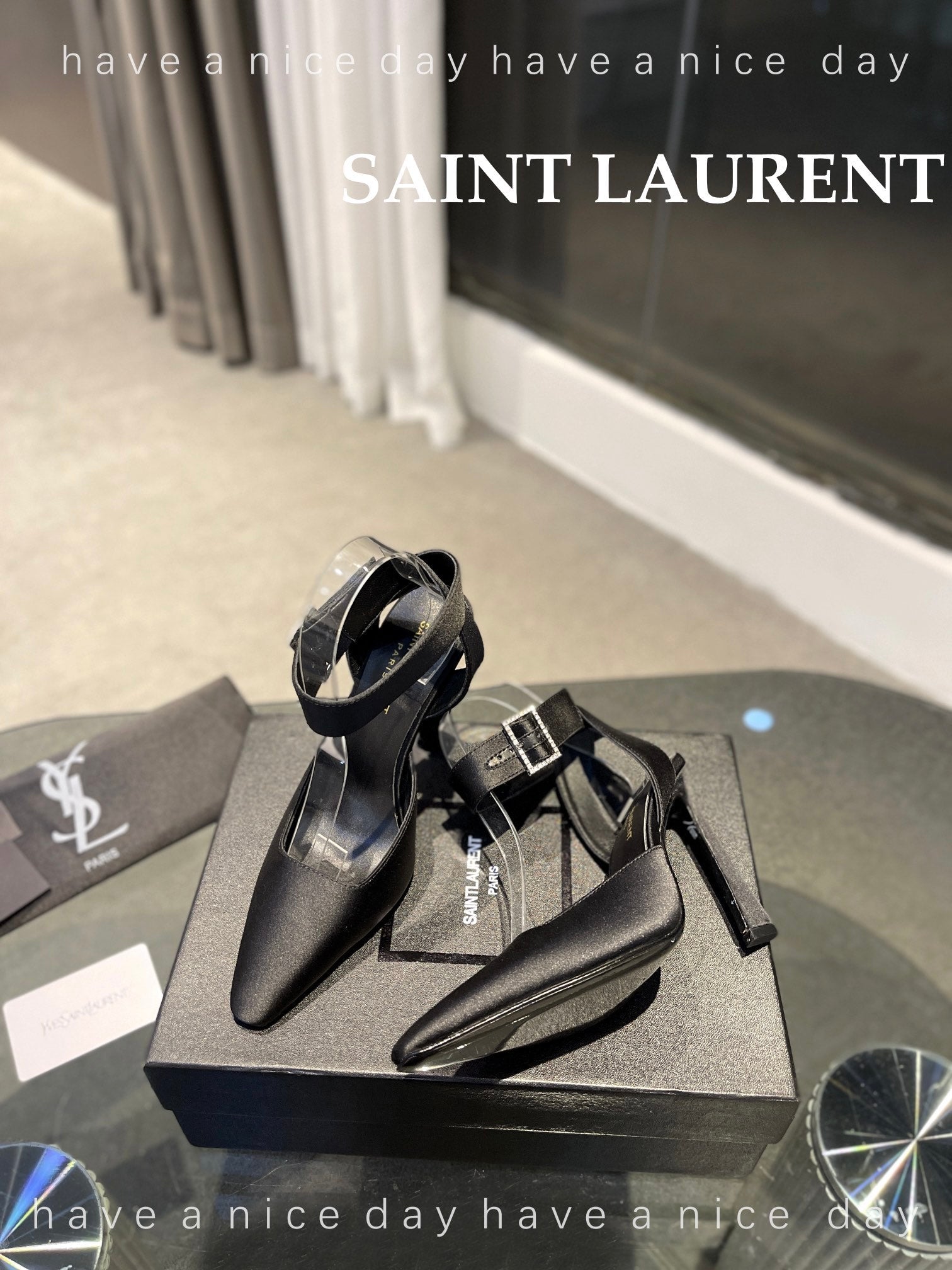 SL FANNY SLINGBACK PUMPS BLACK SATIN